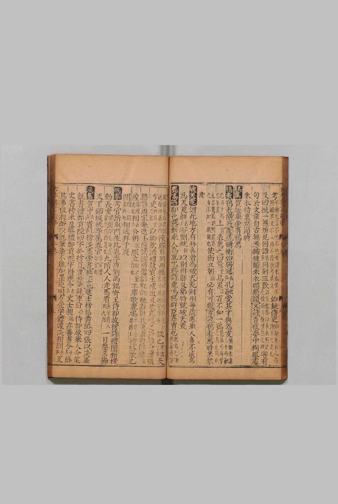 《考正古本注释书言故事》十卷,宋胡继宗辑、明陈玩直注释。明万历二十六年书林郑云竹刻本。四册。每半页十二行,行二十六字,小字双行同,四周双边,白口,双鱼尾。卷首有:天顺八年(1464)冬十二月吉旦安城陈玩直“书言故事序”,序末有:“万历戊戌岁仲秋吉旦次书林郑云竹梓”刊记。次“新刊书言故事目录”。每卷首有图,共十幅。题“庐陵胡继宗编集、安城陈玩直注释”。前有天顺八年(1464)陈玩直序。卷十末有“万历戊戌岁郑云竹锓梓”荷盖莲座刻书牌记。