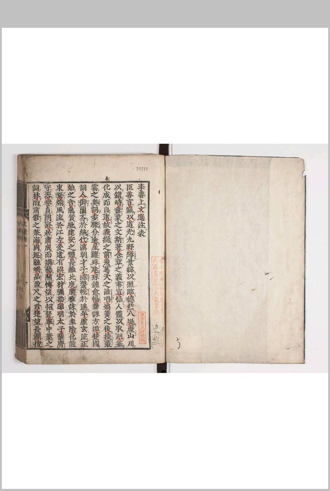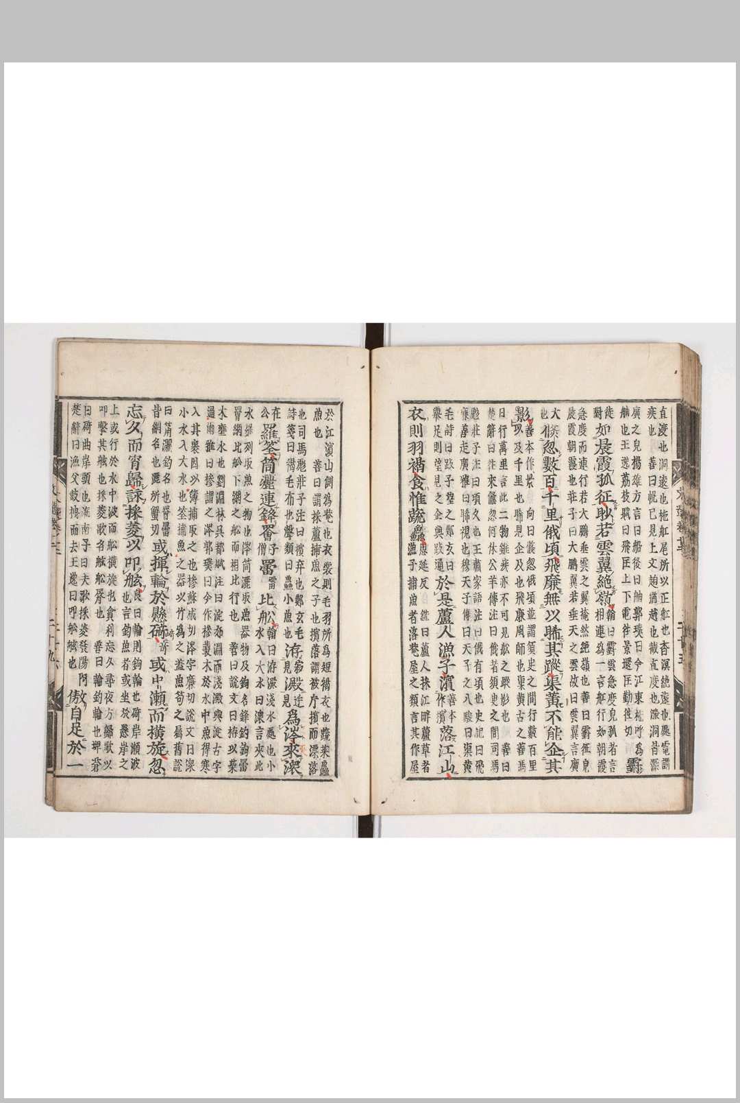 《昭明文选》是中国现存编选最早的诗文总集,它选录了先秦至南朝梁代八九百年间、100多个作者、700余篇各种体裁的文学作品。因是梁代昭明太子萧统(501年—531年)主持编选的,故称《昭明文选》。作品共60卷,分为赋、诗、骚、七、诏、册、令、教、文、表、上书、启、弹事、笺、奏记、书、檄、对问、设论、辞、序、颂、赞、符命、史论、史述赞、论、连珠、箴、铭、诔、哀、碑文、墓志、行状、吊文、祭文等类别。《文选》所选作家上起先秦,下至梁初(以“不录存者”的原则没有收入当时尚健在的作家),作品则以“事出于沉思,义归乎翰藻”为原则,没有收入经、史、子书。
