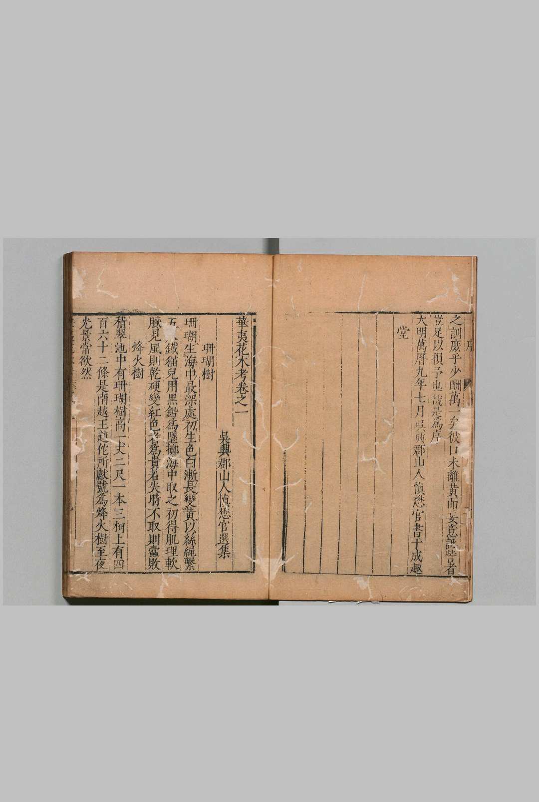 明慎懋官撰。懋官字汝学,湖州人。是书凡花木考六卷,鸟兽考一卷,珍玩考一卷,续考二卷。或剽取旧说,或参以己语,或标出典,或不标出典,真伪杂糅,饾飣无绪。如枫树一条称谟按云云,似著此书者名谟。又木莲树一条称元和十四年夏命道士毌邱元志写,因题绝句云云,似著此书者在唐代。至卫懿公好鹤一条不引《左传》而引传奇俚词,尤为不考。卷首自序一篇,词极夸大,过矣。