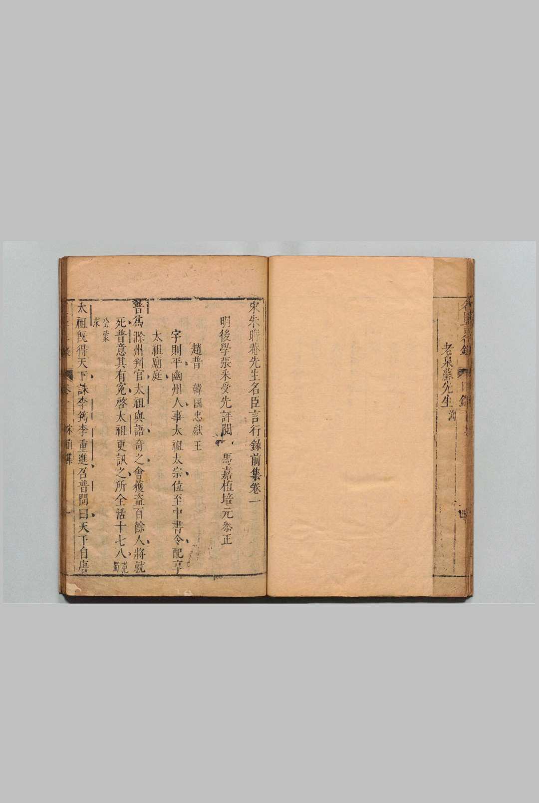 《宋名臣言行录》是由南宋朱熹、李幼武撰写的传记,共七十五卷,朱熹撰前集十卷,后集十四卷,李幼武撰续集、别集、外集五十一卷。该书汇编了散见于文集、传记中的宋代重要人物的事迹,共收入北宋以及南宋人物二百二十五人。