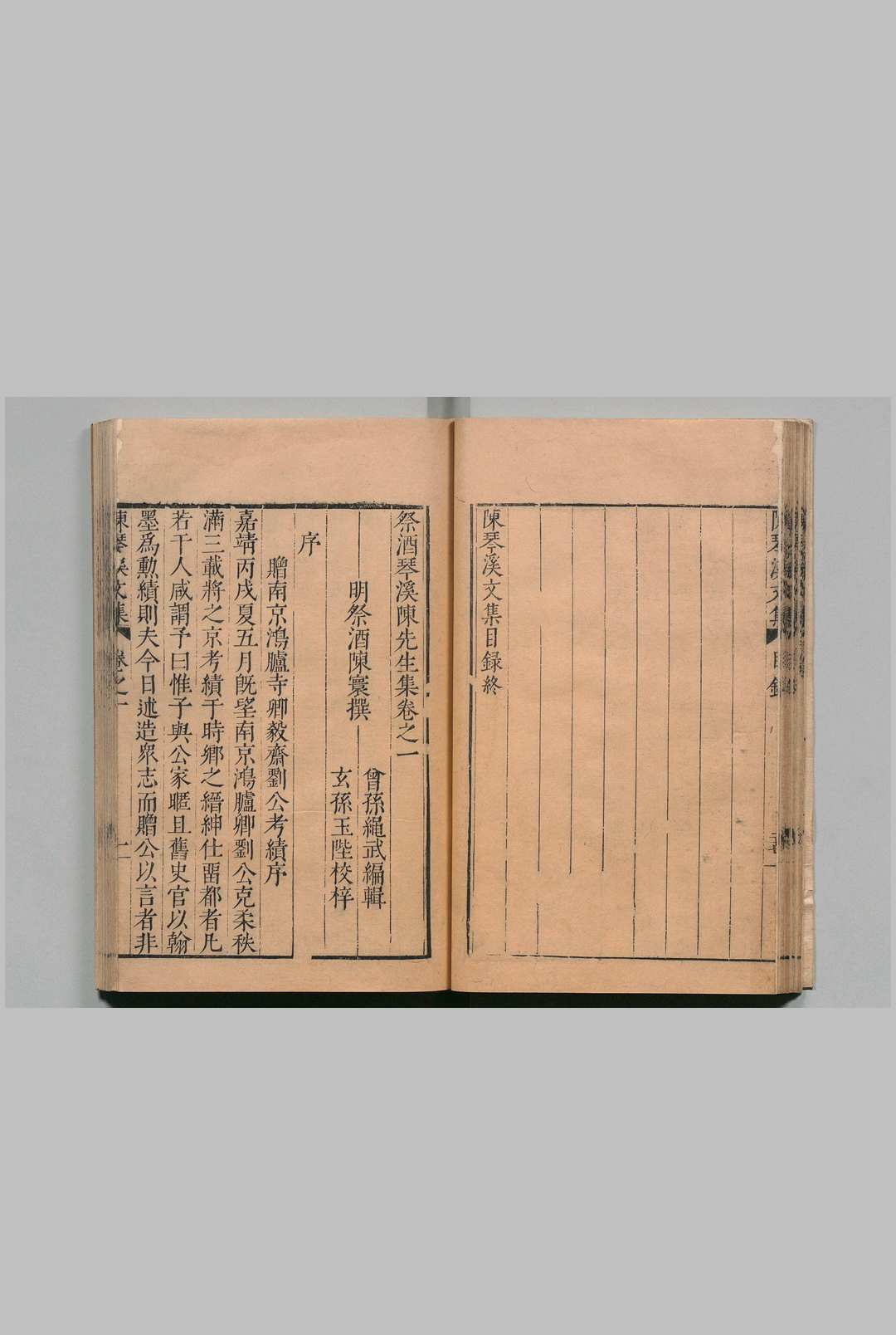 祭酒琴溪陈先生集 8卷 传志行实附1卷 陈环 陈縄武 明刊本