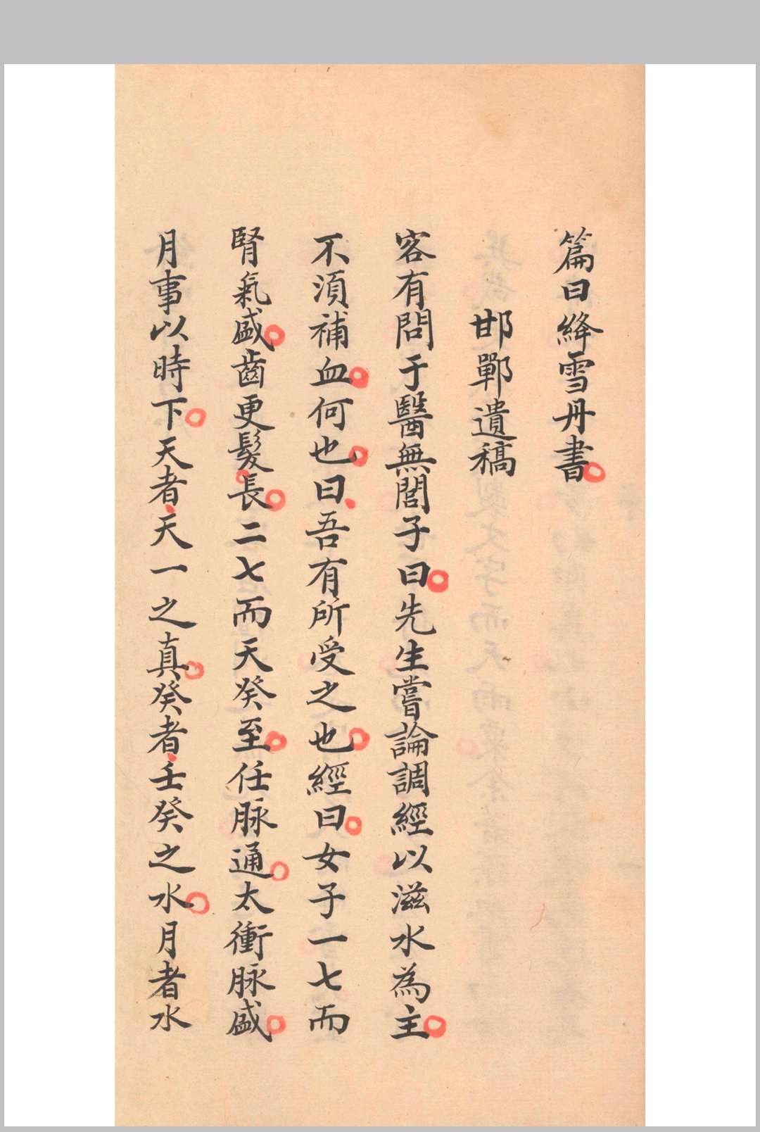 《绛雪丹书》是明代医家赵贞观所著的妇产科专著,全书分为胎症、临产、产后及附录四个专题,系统论述妊娠诊断、安胎方药、产后病症治疗等内容,其中以生化汤为代表的方剂在妇科临床中应用广泛。