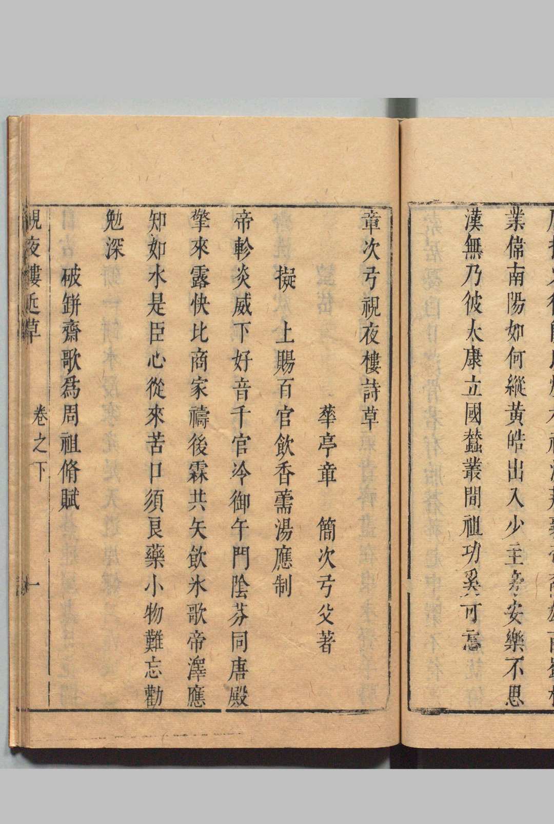 章次弓视夜楼赋草 1卷 视夜楼诗草 2卷 章简 明刊本