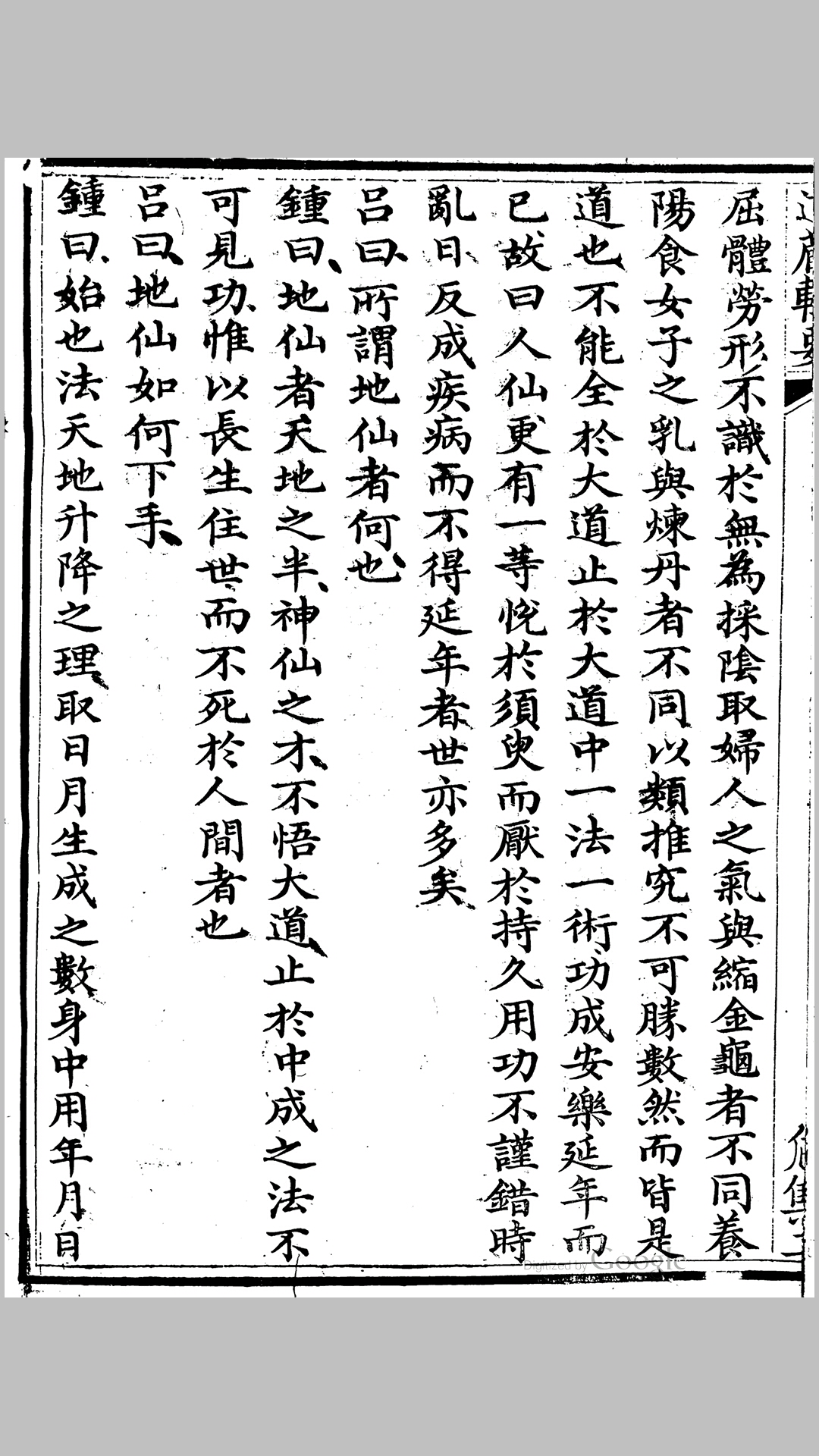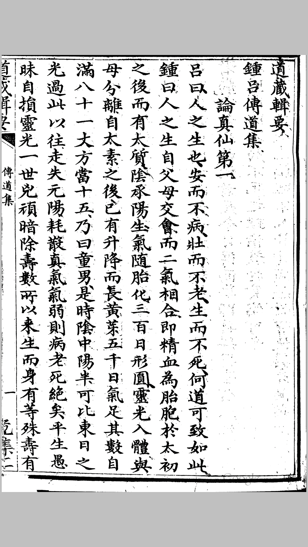 内功内丹术经典著作。3卷。又名《真仙传道集》或《钟吕传道记》。五代,施肩吾整理。全书以钟离权与吕岩师徒问答的形式,论述内丹术要义共18卷论真仙、大道、天地、日月、四时、五行、水火、龙虎、丹药、铅汞、抽添、河车、还丹、练形、朝元、内观、磨难、征验。全书以天人合一思想为基础,阴阳五行学说为核心,炼形炼气炼神为方法,系统完整地论述了气功学说的精华—内丹学说.建立了钟吕派内丹体系,对后世影响甚大。《钟吕传道集》属钟吕内丹派早期著作。极受后世推崇,在内丹史和道教宗派史上具有不容忽视的地位,它整理了吕洞宾内丹文献,反映了完整的养生教育、教学过程,包含有大量丰富的道教内丹养生教育思想。
