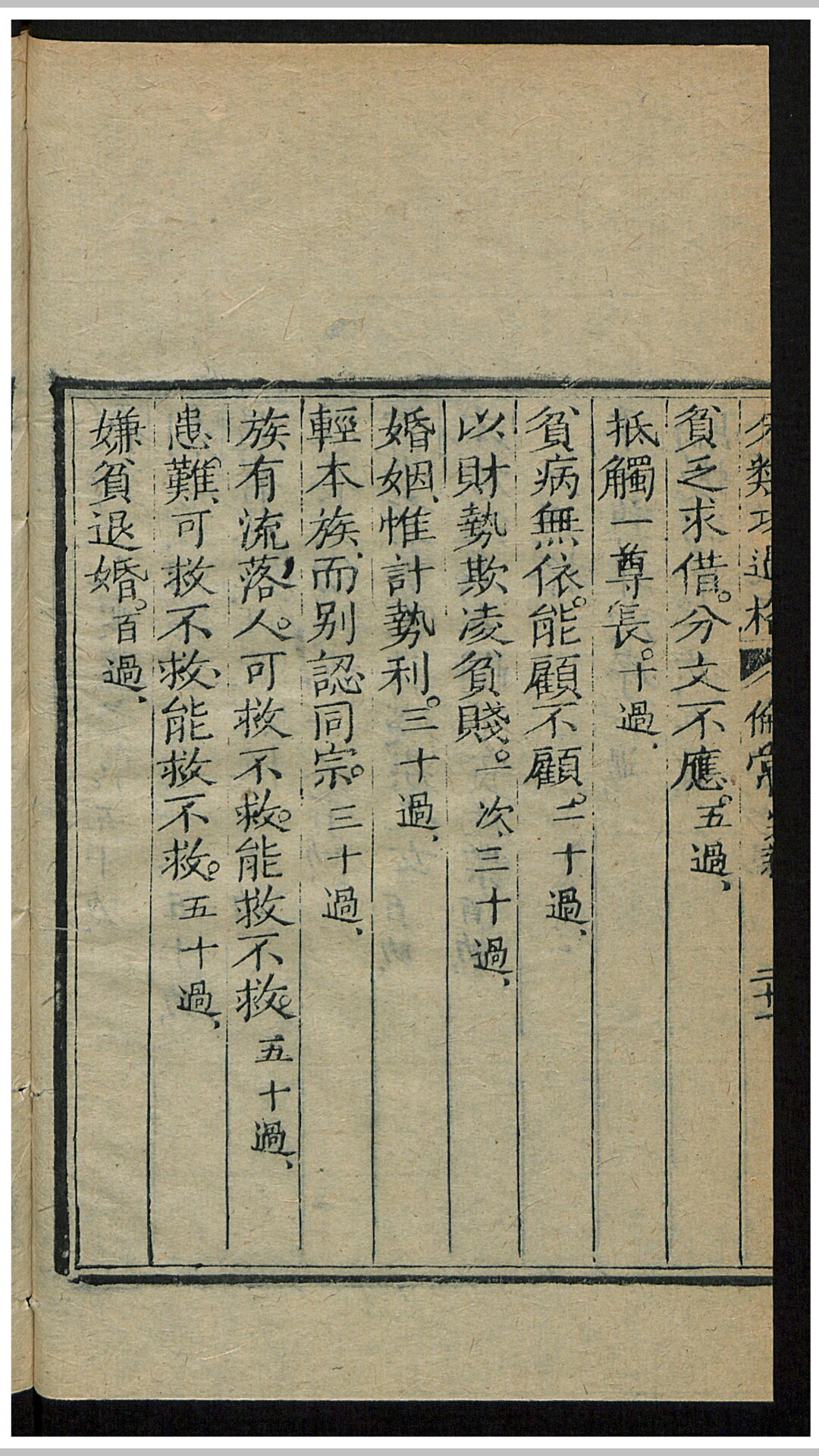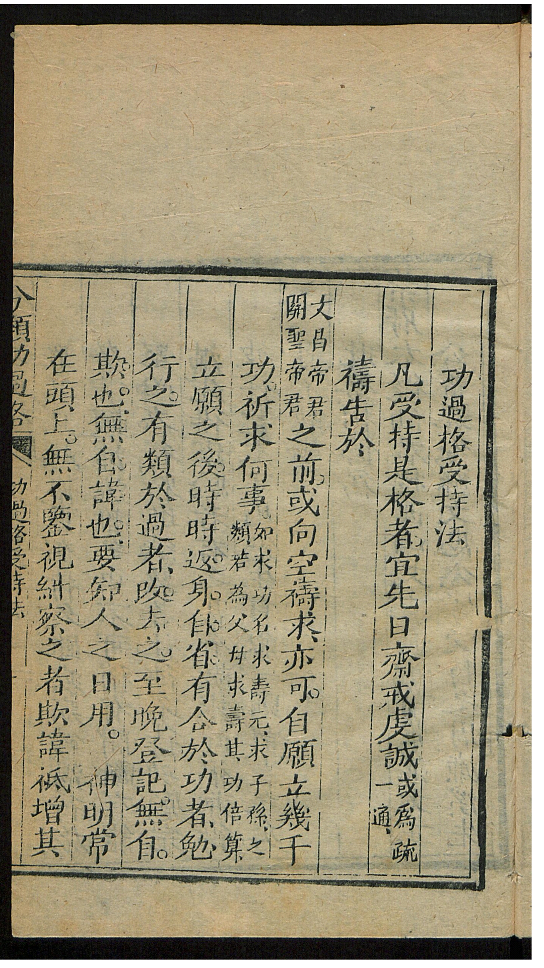功过格是自记善恶功过的一种簿册。善言善行为“功”,记“功格”;恶言恶行为“过”,记“过格”。《太微仙君功过格·序》称:“修真之士,明书日月,自记功过,一月一小比,一年一大比,自知功过多寡。”功多者得福,过多者得咎。道教以此作为道士自我约束言行、积功行善的修养方法。