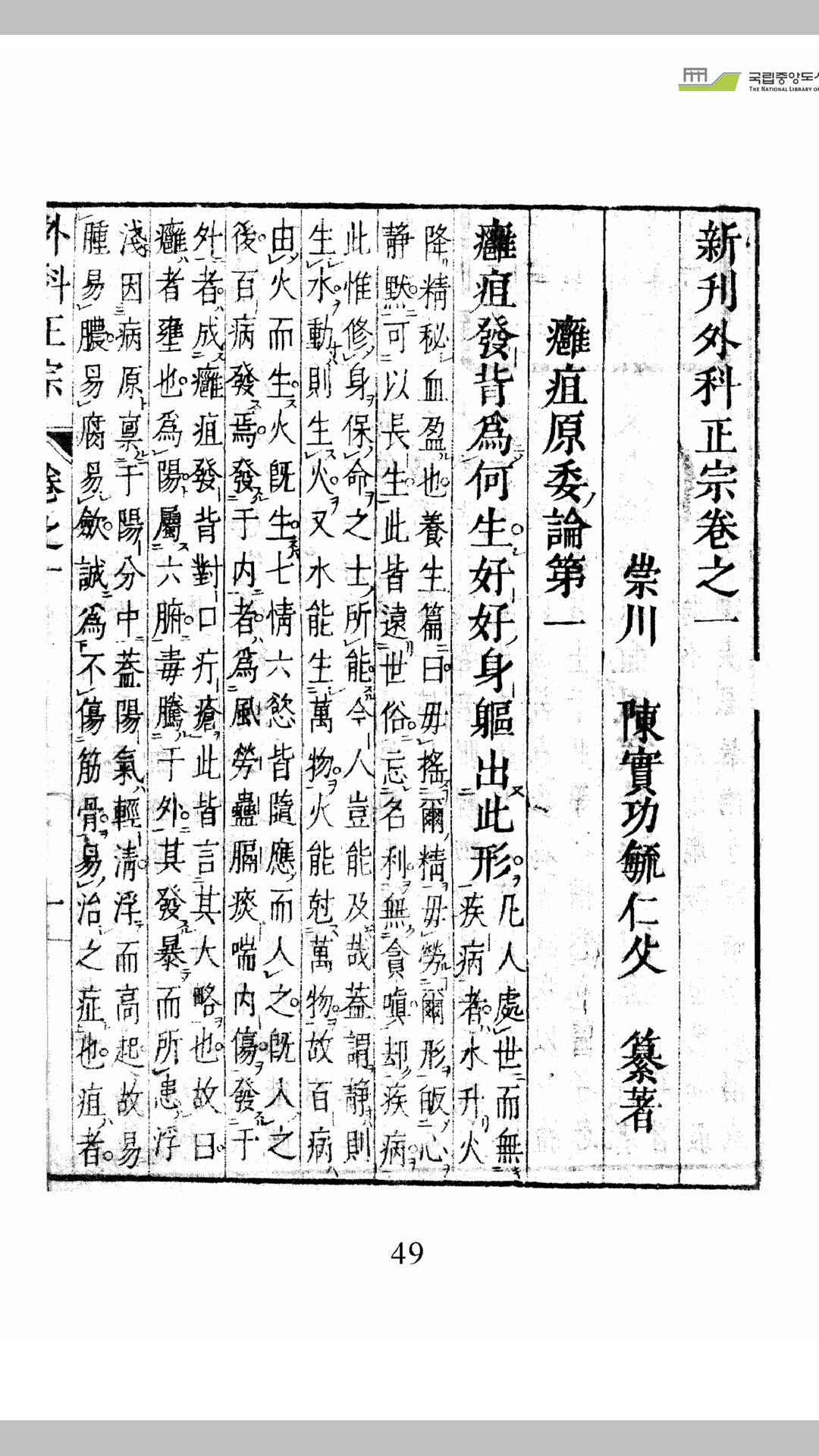《外科正宗》(公元 1617 年)明.陈实功(若虚,毓仁)着。四卷。所叙疾病百余种,每病列病理、症状、诊断、治法、成败病案,最后选列方剂。既重视内治,也强调外治,既主张早期手术,又反对滥施针刀。对截肢术、下颔正复术、死骨剔除术、鼻瘜肉摘除术、痔漏手术等有所发展。