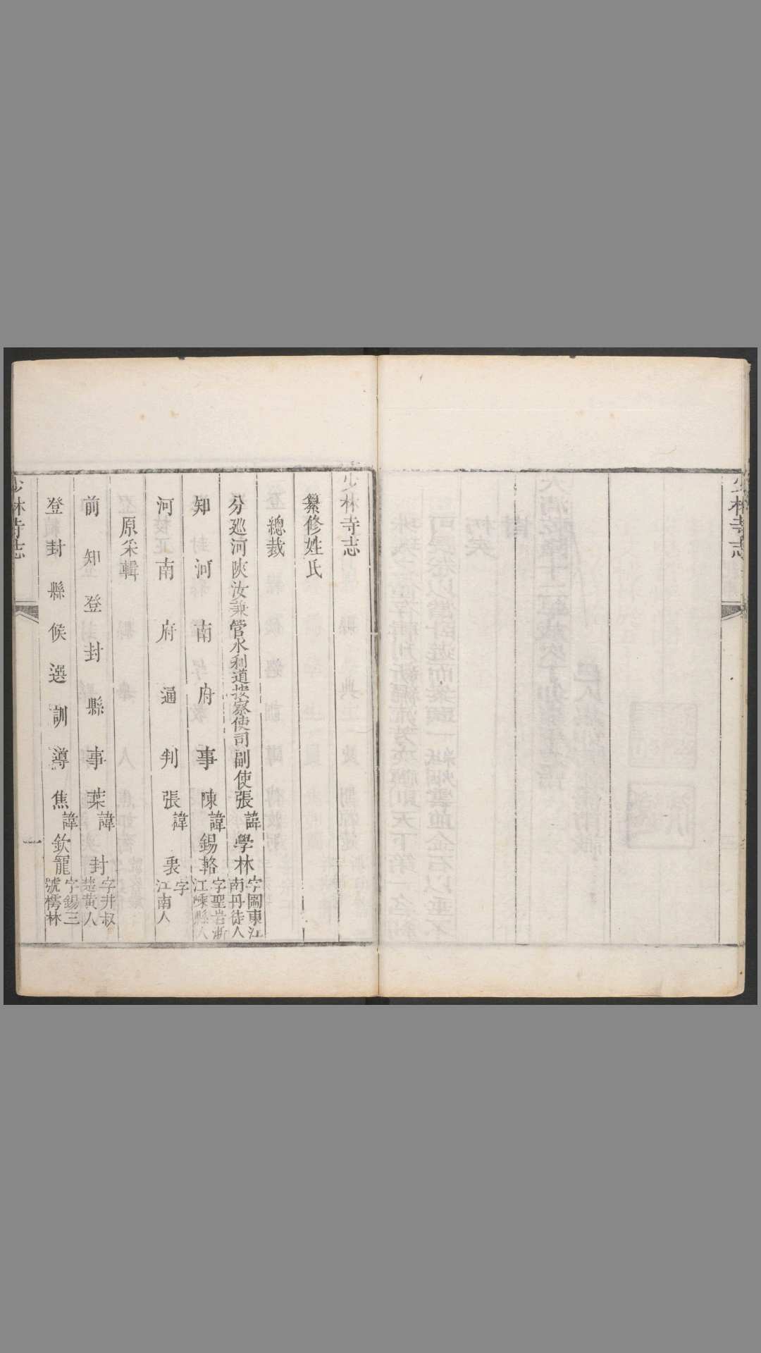 这一座著名中外的寺院,自建寺以后至清朝乾隆十三年(1748年)的1250多年中,还没有一本专志。有关寺的记载,只能散见于《嵩山志》、《说嵩》及河南地方志书与名人的诗文笔记。一直到了乾隆初年,有一个登封县本地的举人焦如蘅,才辑录成为《少林寺志》