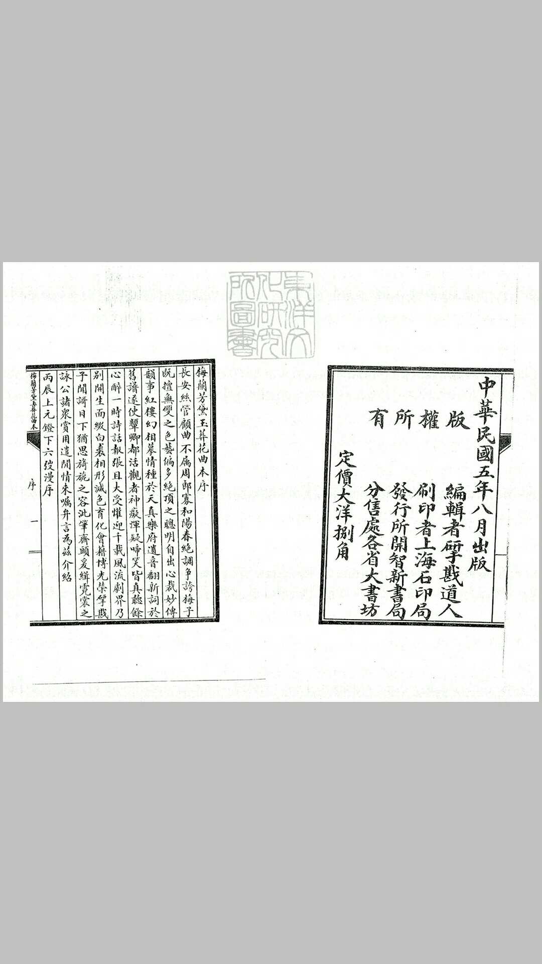 梅兰芳黛玉葬花曲本一卷 民国五年上海开智新书局石印本