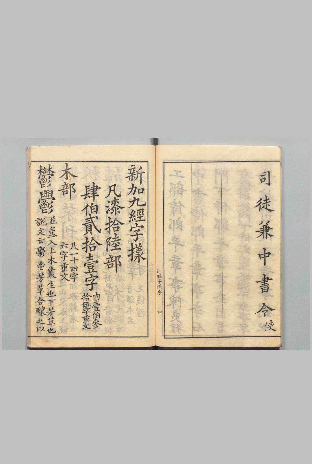 唐唐玄度撰。字书,一卷。是书是一本辨正经传文字形体的字书。全书收字四百二十一个,分为七十六部。唐代宗大历十一年(776)张参曾奉诏与儒官较经典文字,撰成《五经文字》一书,收三千二百三十五字。因岁月既久,点画参差,传写相承,渐致乖误。唐文亲太和七年(833)玄度奉诏再定经传字体、考订字形,成《九经字样》。九经;指《周易》、(尚书)、《毛诗》、《周礼》、《仪礼》、《礼记》、《左传》、《公羊传》、《梁传》及《论语》等十种儒家奉为经为经典者;“九”古谓数之极,指多种。新加指于《五经文字》之外增补者。此书不全据《说文》,亦非全依当时文字,而是商校是非,取其确当,对汉字规范化起了很大作用,堪为字书之榜样。故名《新加九经字样》,又名《九经字样》。成书于唐文亲开成二年(833)。