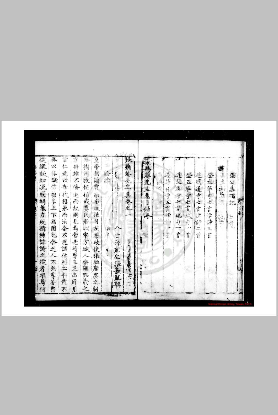 张鷃菴先生集 张鷃菴先生集 明嘉靖戊子(七年, 1528)商州学正王道刊本