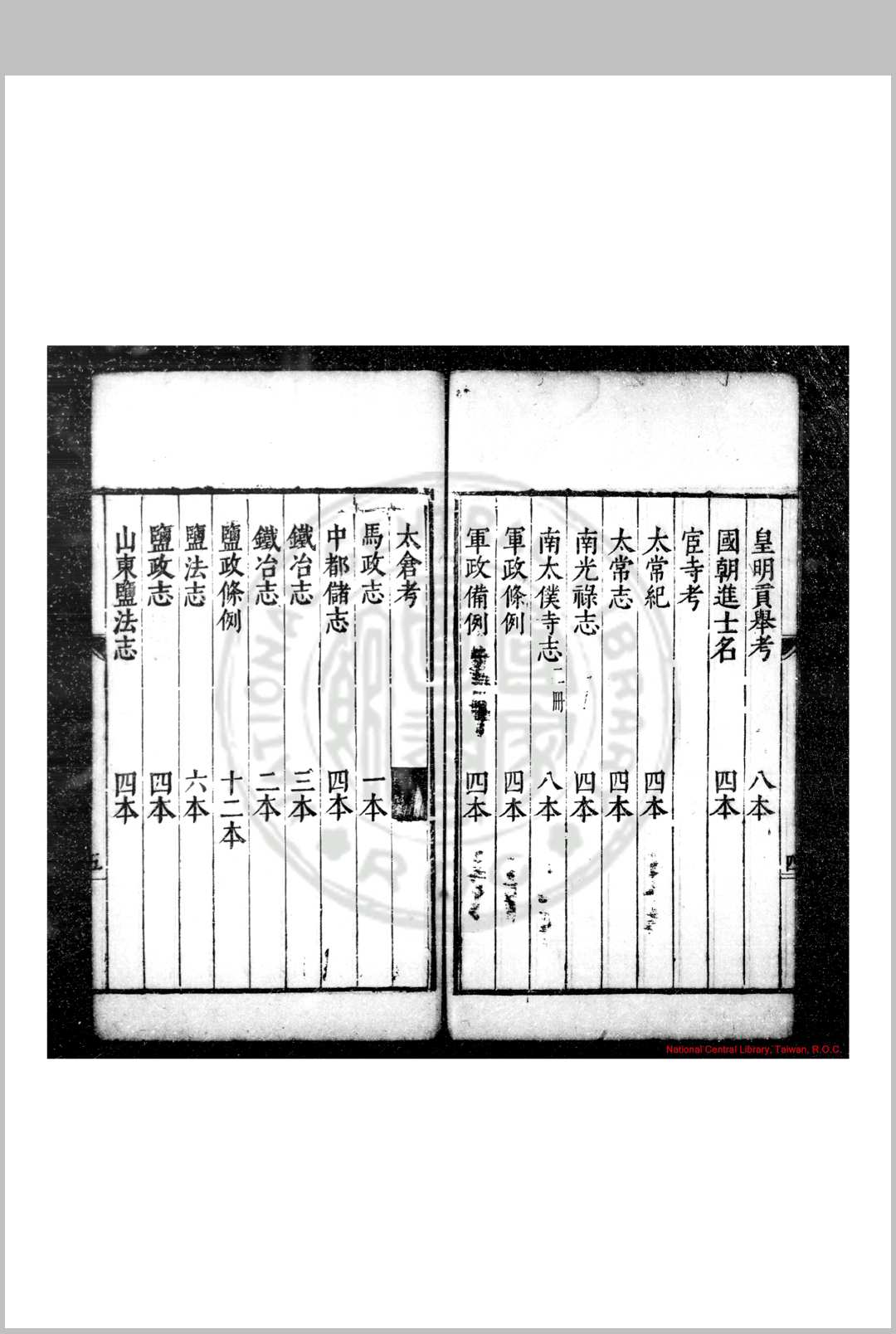 藏书书目类书籍 行人司书目
