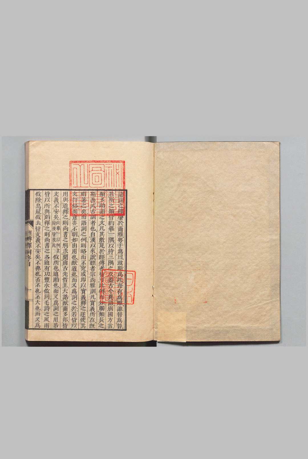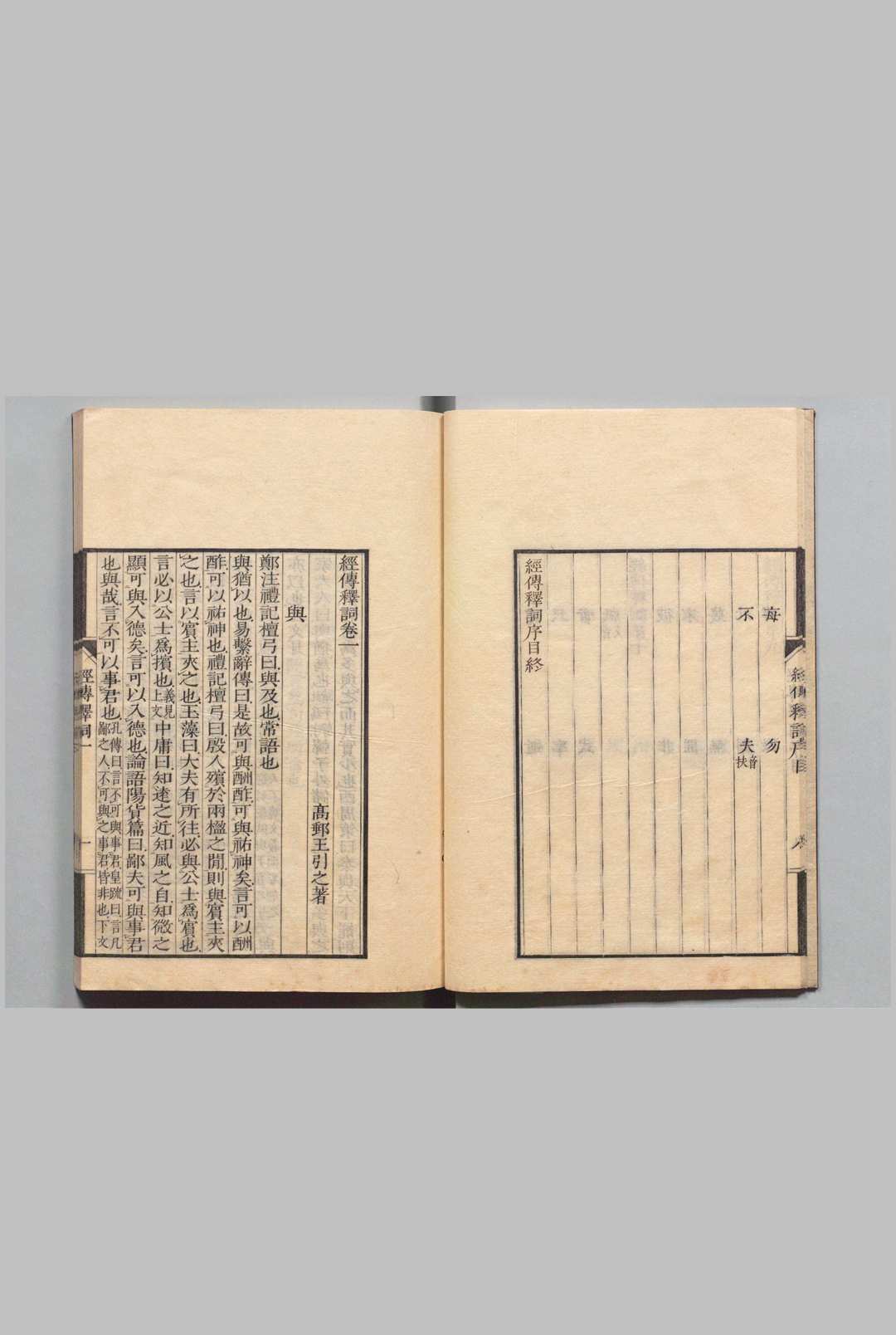 《经传释词》内容主要是阐释西汉以上单音虚词的用法,而对复词或单音词的连用,在释文中也偶有所及。如“庸”条下的“庸何”“庸安”“庸讵”“庸孰”等。对同音词、同义词等相关者亦间有比类分析,或合组为条。如:“耿、聿、遹、日”,“嘻、禧、唉、误、熙”,“无、毋、亡、忘、妄”等。在考释方面,亦时有精义。如:“家大人日:‘终’,词之‘既’也。……《诗·终风》日:‘终风且暴。’毛《传》日:‘终日风为终风。《韩诗》日:‘终风,西风也。’此皆缘词生训,非经文本义。终,犹‘既’也,言既风且暴也。”