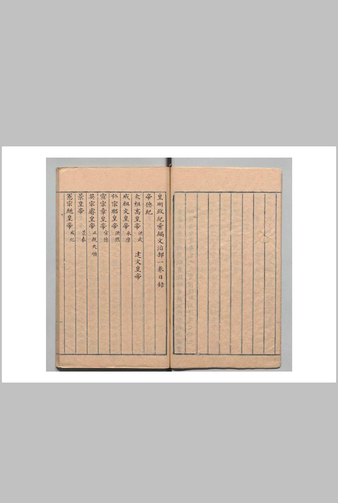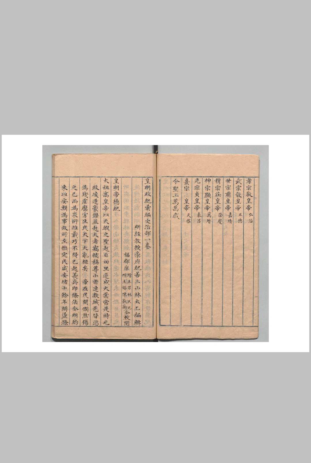 皇明政纪汇编 文治部4卷 武功部4卷 名臣奏疏行实略2卷 林太乙(明)清写本