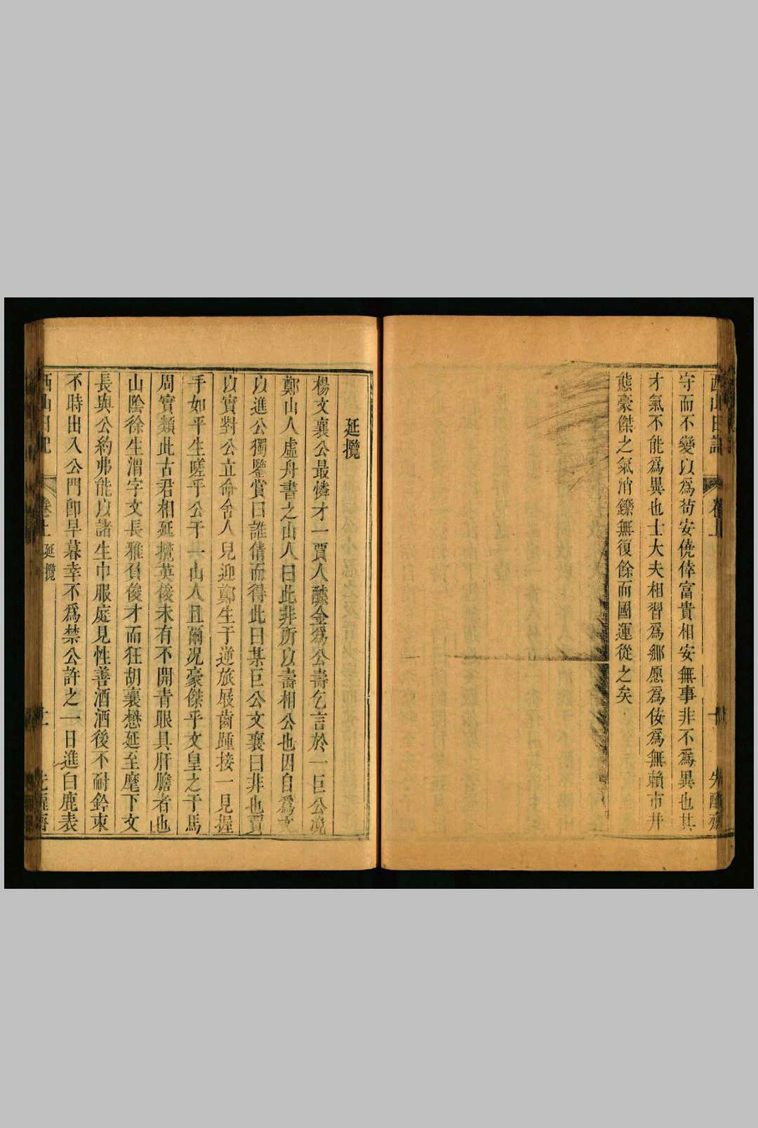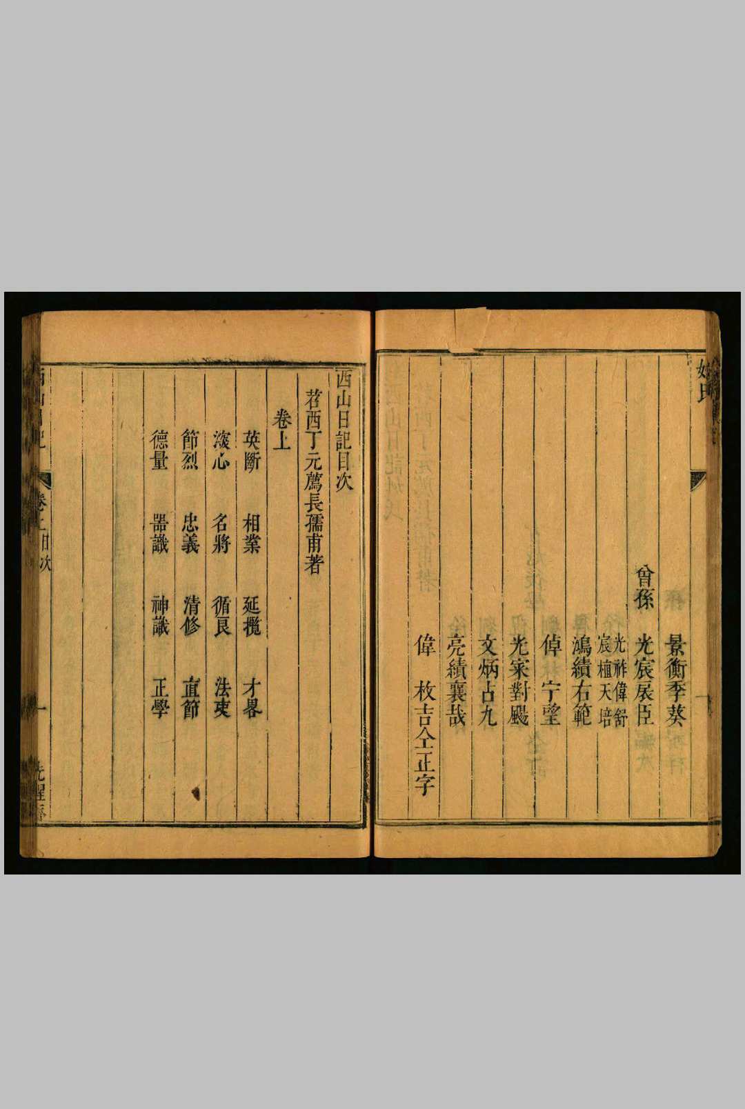 明丁元荐撰。元荐字长孺,长兴人。万历丙戌进士,官至尚宝司少卿。事迹具《明史》本传。是编杂录自洪武迄万历朝野事迹,分英断、相业、延揽、才略、深心、名将、循良、法吏、节烈、忠义、清修、直节、德量、器识、神识、正学十六类,为上卷;古道、友谊、义侠、格言、正论、清议、文学、师模、庭训、母范、孝友、笃行、方术、高隐、恬退、持正、贤媛、耆寿、家训、日录二十类,为下卷。西山者,其所隐居处也。末附避乱五箴,盖已刻於《拙存堂集》中者,以其切裨身世,故复入於是编云。