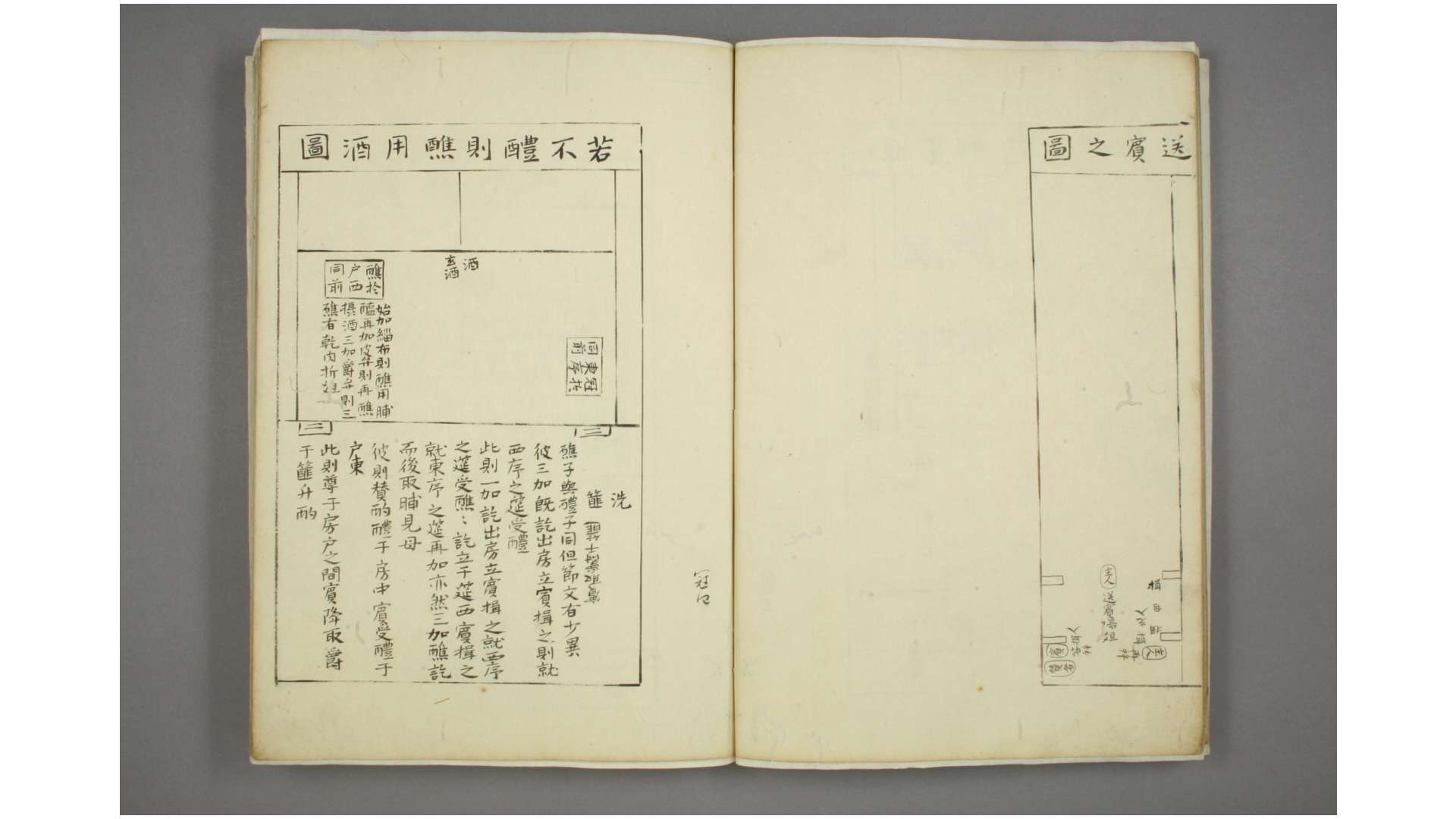 宋杨复撰。复字茂才,号信斋,福州人。郑逢辰为江西漕,以所撰《仪礼经传通解续》献於朝,赠文林郎。是书成於绍定元年戊子。《书录解题》谓成於淳祐中,盖未核其《自序》也。《序》称严陵赵彦肃作《特牲、少牢二礼图》,质於朱子。朱子以为更得《冠昏图》及堂室制度更考之乃佳。复因原本师意,录十七篇《经》文,节取旧说,疏通其意,各详其仪节陈设之方位,系之以图,凡二百有五。又分《宫庙门》、《冕弁门》、《牲鼎礼器门》,为图二十有五,名《仪礼旁通图》,附於后。其於是《经》,可谓用心勤挚。惟是读《仪礼》者必明於古人宫室之制,然后所位所陈,揖让进退,不失其方。故李如圭《仪礼通释》、朱子《仪礼经传通解》皆特出《释宫》一篇,以总挈大纲,使众目皆有所丽。是书独废此一门,但随事立图,或纵或横,既无定向,或左或右,仅列一隅。遂似满屋散钱,纷无条贯。其见於《宫庙门》仅止七图,颇为漏略。又远近广狭,全无分数。如序外两夹,刘熙《释名》所谓“在堂两头,故曰夹”是也。图乃与房、室并列,则《公食大夫礼》“宰东夹北西面”,《疏》云“位在北堂之南”,《特牲馈食礼》“豆、笾、鉶在东堂”,《注》云“房中之东当夹北者”,皆茫然失其处所矣。门与东西塾同在一基,图乃分在东隅西隅,则《士虞礼》“七俎在西塾之西”无其地及《士冠礼》“摈者负东塾”之类,皆非其处所矣。如斯之类,殊未能条理分明。然其馀诸图,尚皆依《经》绘象,约举大端,可粗见古礼之梗概,於学者不为无裨。一二舛漏,谅其创始之难工可也。