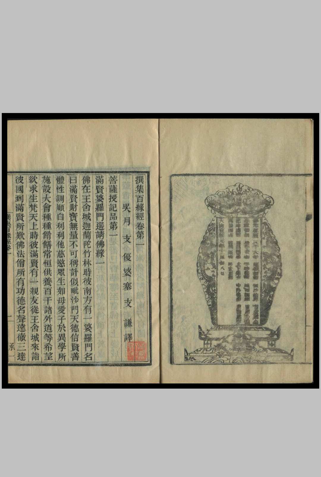 十卷。相传由释迦.摩尼的弟子迦叶佛整理,吴·支谦译。又称《百缘经》。收录于《大.正.藏》第四册。系以百种事缘来说忝恶业果之事实。全书共分十品,即〈菩萨授记品〉、〈报应受供养品〉、〈授记辟支佛品〉、〈出生菩萨品〉、〈饿鬼品〉、〈诸天来下供养品〉、〈现化品〉、〈比丘尼品〉、〈声闻品〉、〈诸缘品〉。每一品各有十缘,故总共有百缘。