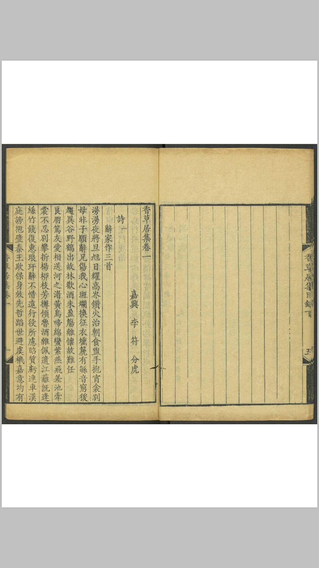 李符. 香草居集 七卷. [嘉兴] 李氏家刊本, 乾隆间