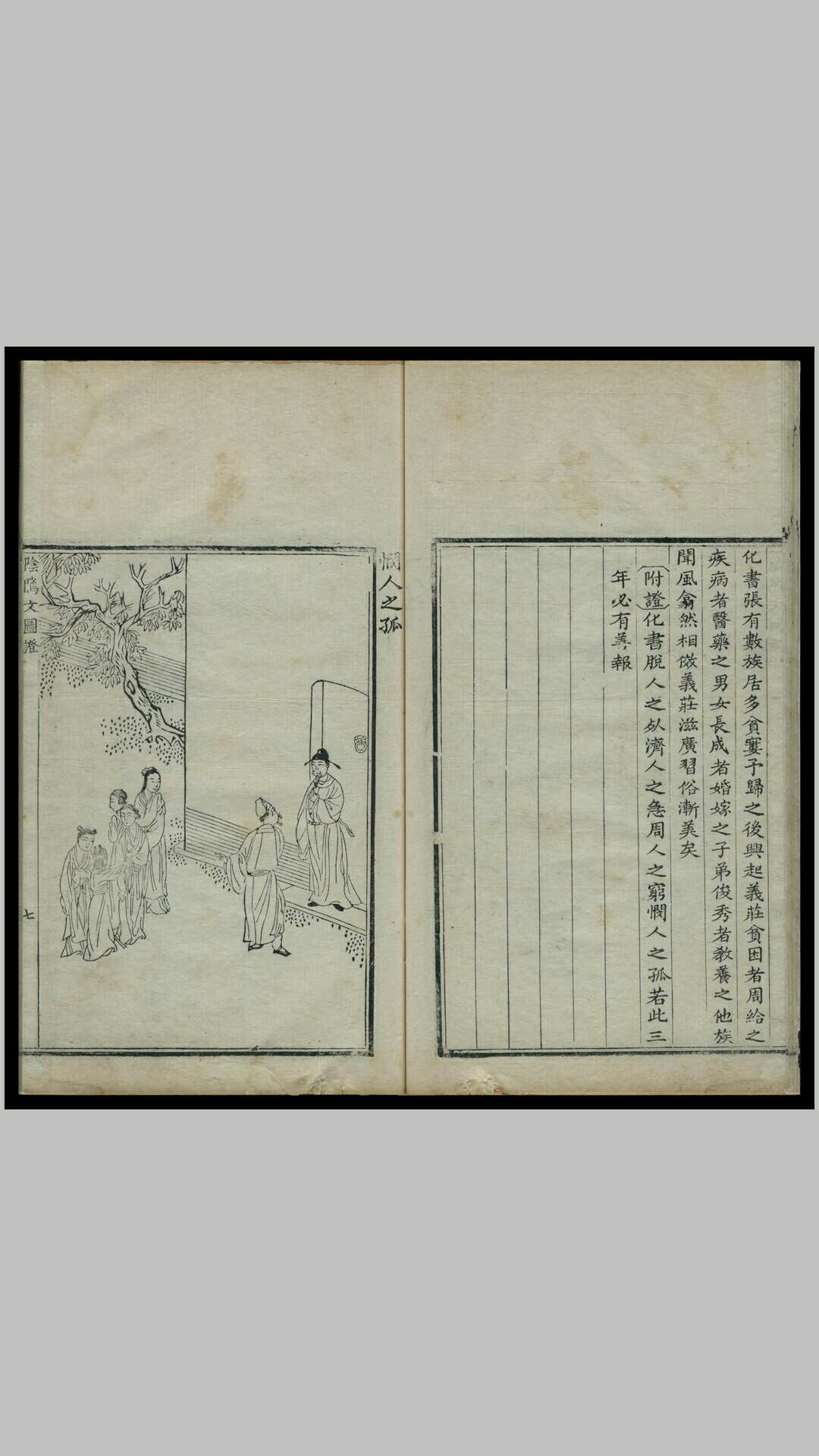 《阴骘文图证》一函四册,光绪癸未(1883)孟春薛福龄重镌。乌程费丹旭绘图,海昌许光清集证,许光治缮写,钱塘汪鉽监刻,海昌蒋光煦校刊。前有王赓扬、郑应钧、黄兆萱所作序文。书后有薛福龄跋文。《阴骘文图证》以《文昌帝君阴骘文》为纲目,分句加以批注、附证,并配以图像,先图后文,图文并茂。共有精美版画近百幅。