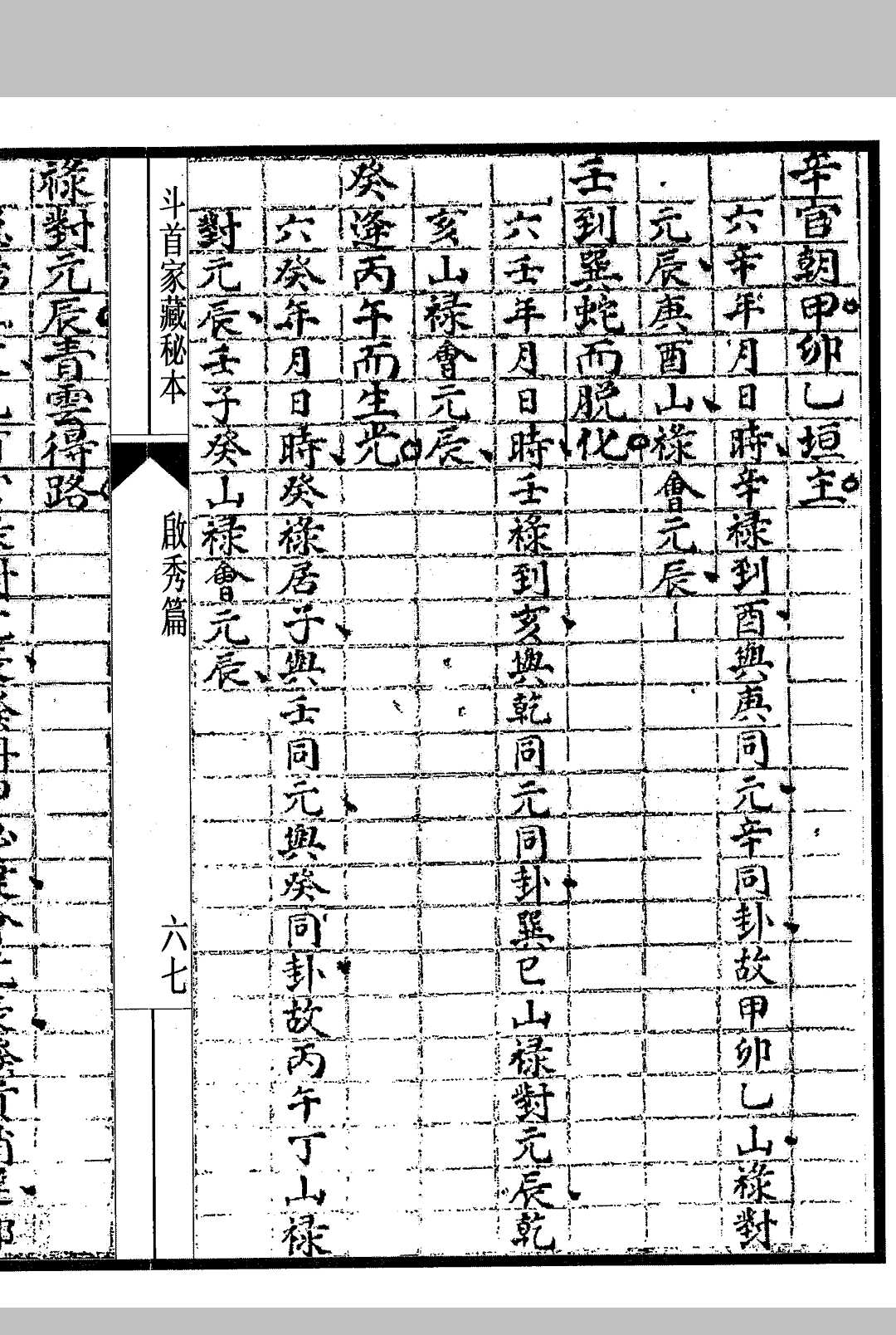 炉传斗首造命藏本说,后天五气叙,啟天篇,啟格篇,启廉子篇,启破鬼篇,启帑篇,启秀篇,啟关篇,启外篇(附录各说并图),启命篇,外篇(附天星诀),附录斗首集要,选择讲要,先天斗首元辰,启元篇,启用篇,启元辰篇,启武财篇,启贪官篇,启气篇,启遁篇,启人篇,启先篇(附录各说并图),造命篇,附録汇集斗首品格定局。