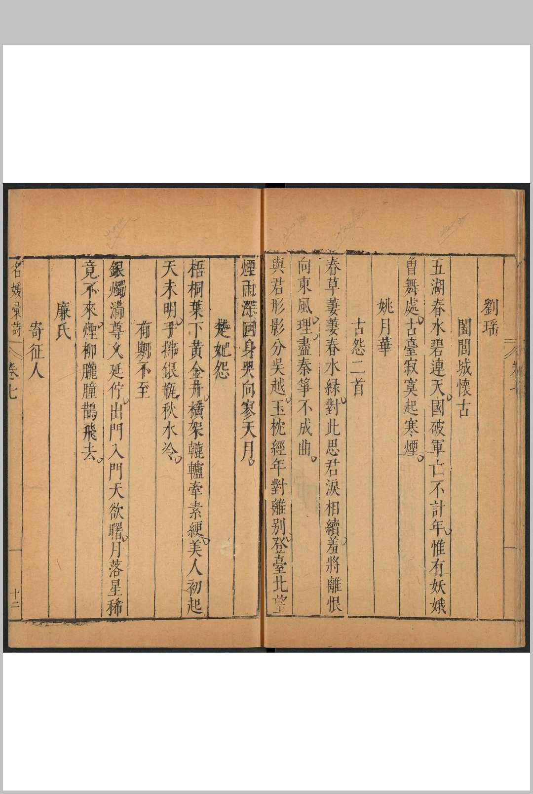 名媛汇诗 二十卷 郑文昂编辑 张正岳, 明泰昌元年