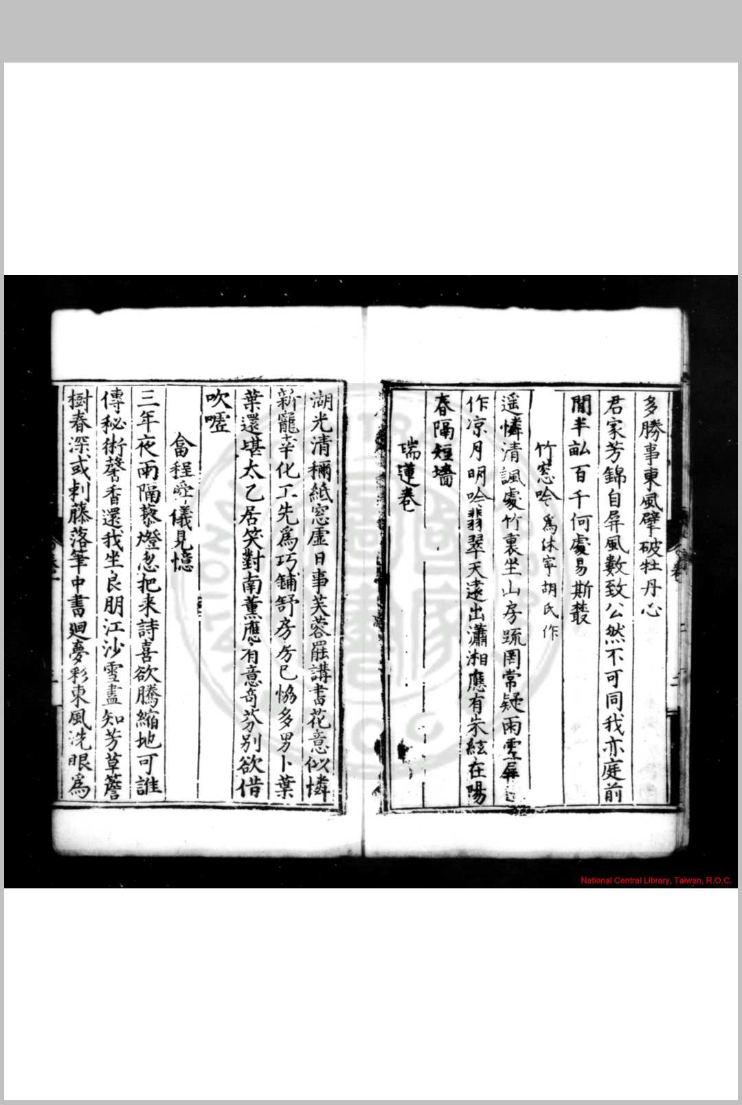 白房杂兴 (明)朱衮撰 明嘉靖间(1522-1566)永州刊本