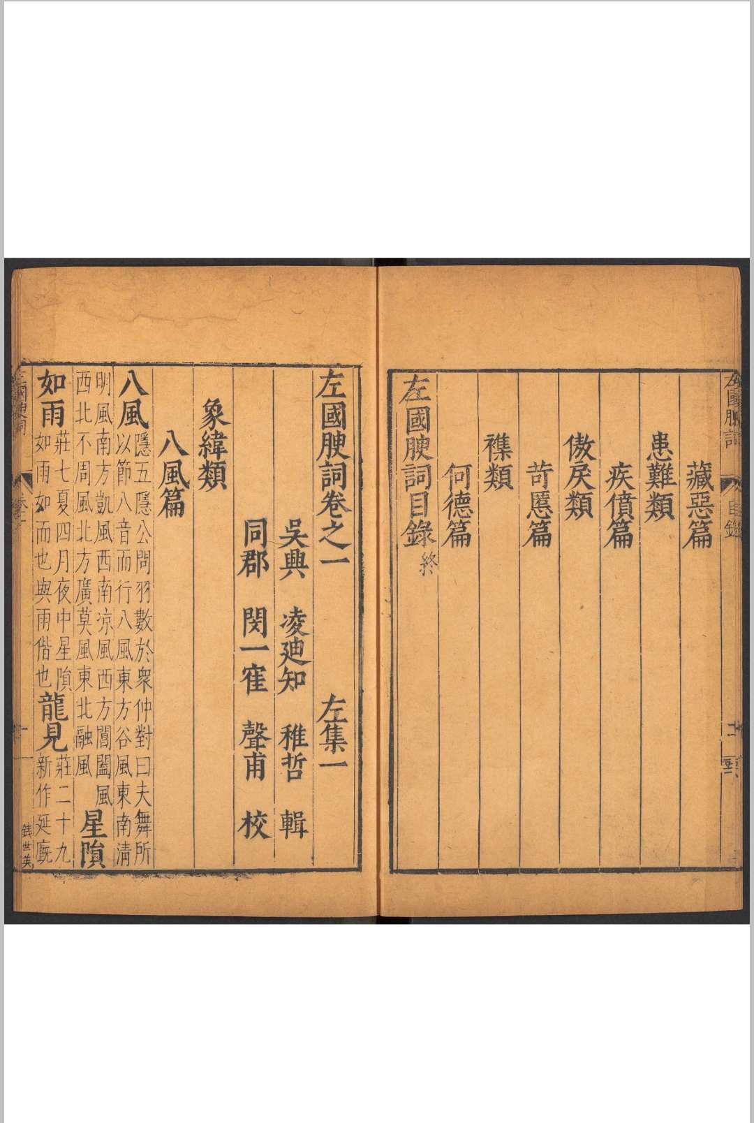 《文林绮绣》辑其自撰和他人著作。文林:泛指文士或文艺图书聚积之所。《后汉书·崔塞传论》:“崔氏世有美才,兼以沉沦典籍,遂为儒家文林。”’《汉书·高帝纪》:“贾人毋得衣锦、绣、绮、毅、缔、芝、厨。”颜师古注:“绮,文缯也,即今之细绫也。”《周礼·考工记》: “画绩之事,……五采备谓之绣。”名《文林绮绣》,比喻所荟集的作品十分优秀,盖自美之词。是书辑人其自撰著作三种:他人著作二种。有万历四年至五年(1576—1577)凌氏刻本、光绪二十年(1894)重刊本。