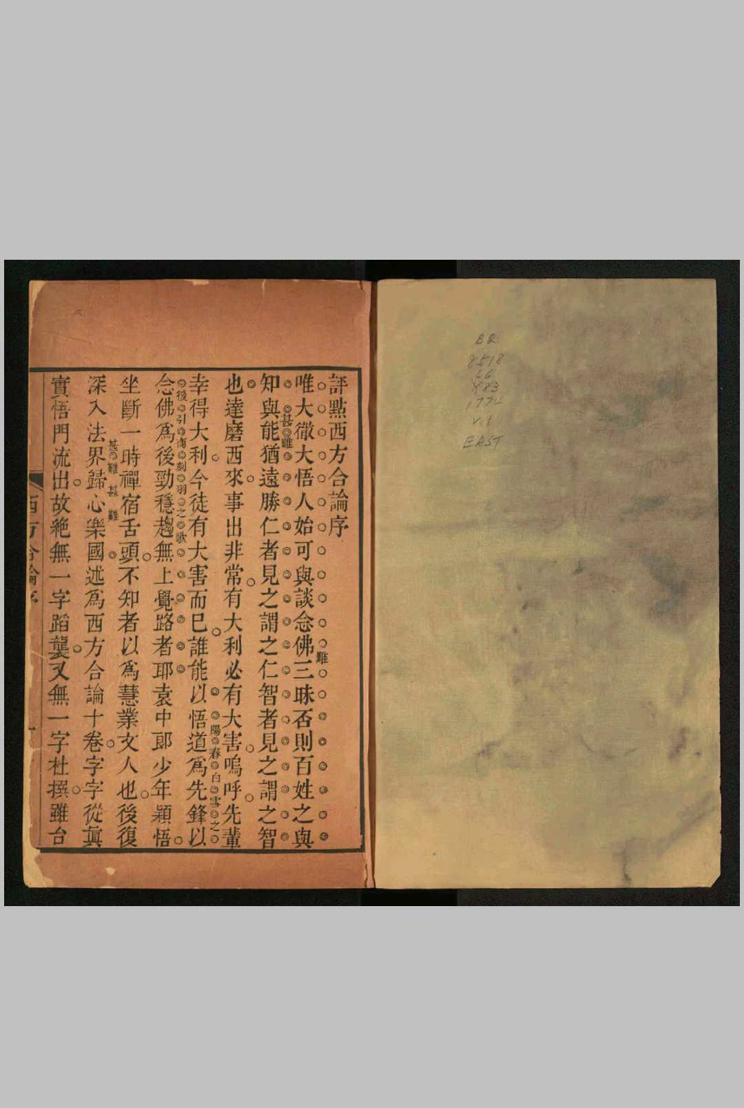 《西方合论》,佛教著述。明袁宏道撰。十卷。是集西方净土诸论及中国净土宗诸师之语编撰而成的一部论述净土教义的著作。