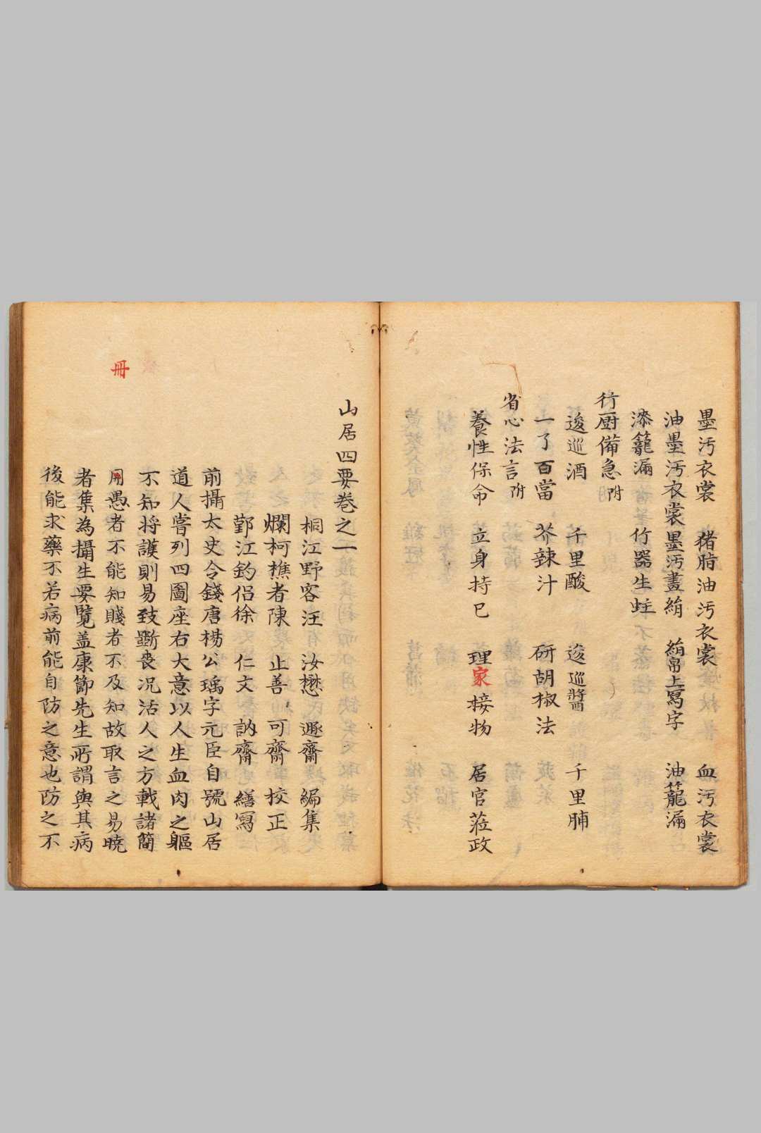 《山居四要》是元代汪汝懋所著的养生著作,共5卷。它分为摄生之要、养生之要、卫生之要、治生之要三个部分。其中,摄生之要讨论了四时起居的宜忌;养生之要介绍了强身健体、祛除百病的方法;卫生之要叙述了预防人畜疾病的方法,并附有治疗六畜病方;治生之要讲述了农事的途径。这本书通俗易晓,简便易行,内容涵盖了居家养生保健的各个方面。