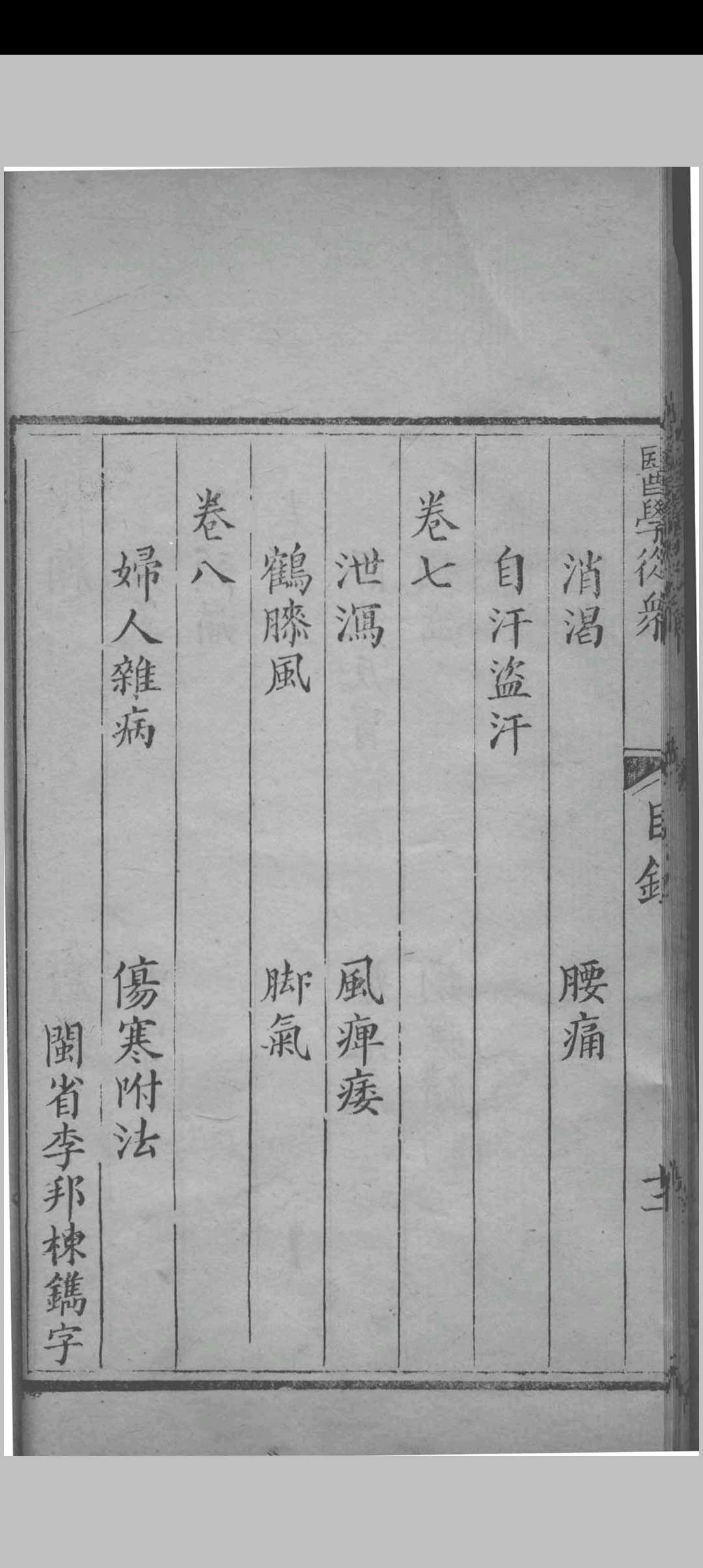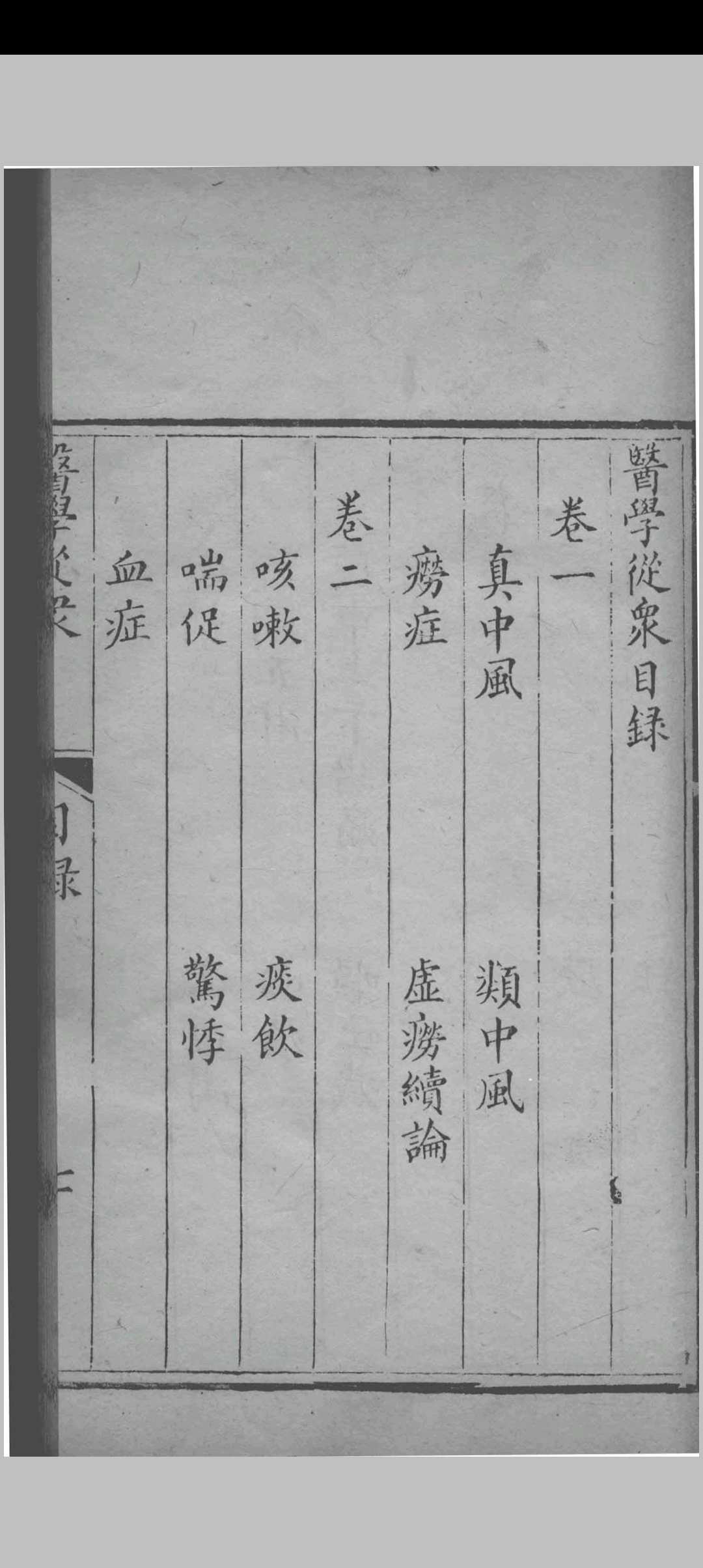 《医学从众录》为清代名医陈念祖所撰。陈念祖字修园,长乐(今福建)人,世医,曾从师泉州名医蔡茗庄。乾隆五十七年(1792)中举,官至直隶省威县知县。陈氏博览群书,于《伤寒论》研究造诣深厚,学验宏富,著述颇丰。《医学从众录》是他的主要代表作之一。该书成于嘉庆二十五年(1820),共八卷。卷一至卷七论述内科杂病证治,卷八记述妇人杂病方,并补述”近世治四时伤寒”之河间两解法及景岳内托法。全书以论述内科杂病证治为主,兼及妇科,法宗仲景,并采各家名言、方治,复参己见,文字简练,论理明晰,对临床辨证用药颇多启发,为后世医家所肯定,可供中医院校学生、中医师及中医爱好者参考。