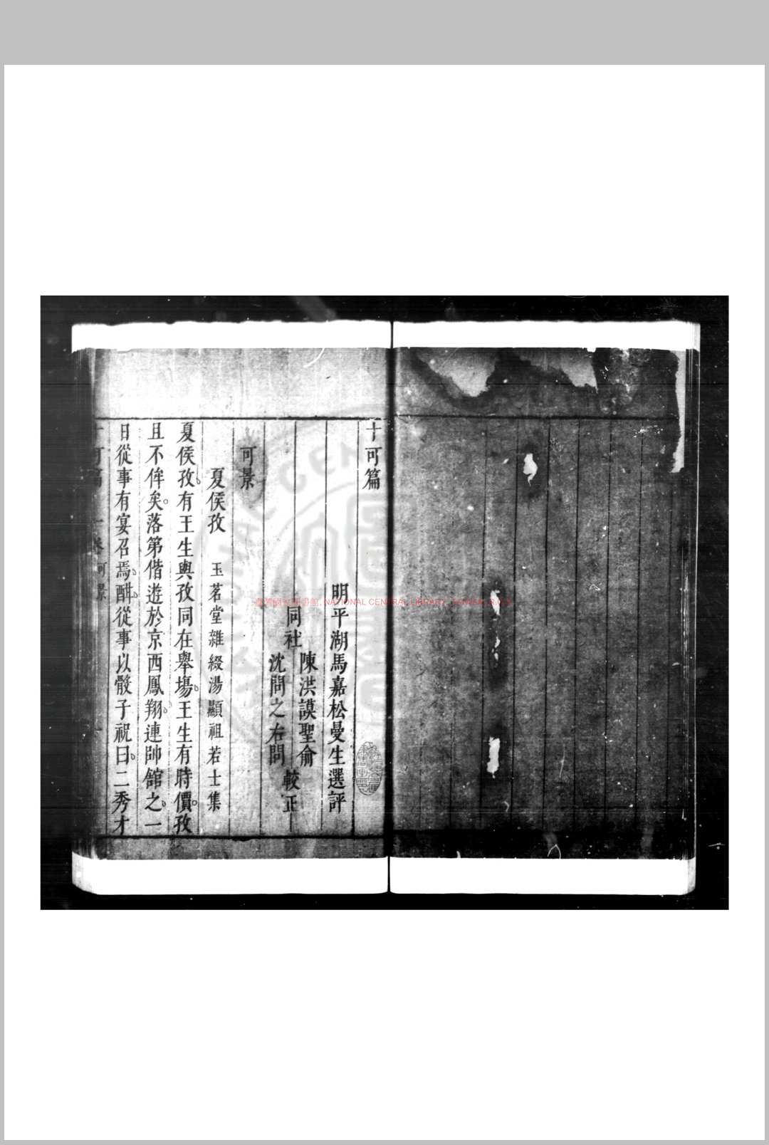 《十可篇》摘录子史及诸家小说中古人言行可为劝勉或惩戒者,分为十篇。曰:可景、可味、可快、可鄙、可泯、可坦、可远、可谐、可嘉、可删,故名。其中可景、可味、可嘉三编多取古人嘉言善行以为劝勉,其余七篇多录古人丑行败德以为戒鉴。有崇祯问刻本及《四库全书存目丛书》本。