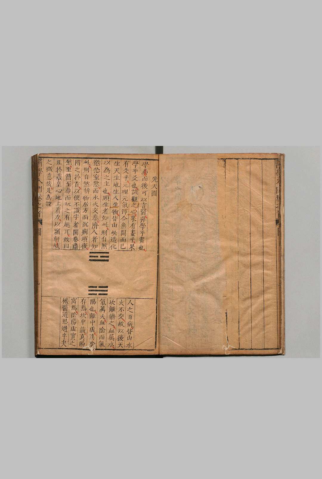 《医学入门》,中医全书。8卷,卷首1卷。明李梴(健斋)撰。刊于万历三年(1575年)。此书以《医经小学》为蓝本。用歌赋形式为正文,以注文补充阐述。内容有医学略论、医家传略、经络、脏腑、诊法、针灸、本草、外感病、内伤病、内科杂病、妇人病、小儿病、外科病、各科用药及急救方等。其中“历代名医姓氏”载明以前名医215人。诊法重视脉诊与望诊,并强调问诊重要性。主张初学者必先学会问诊,列举了应询问事项55项。本草2卷,按药性的寒凉温热及其效用,把900余味药分为治风、治热、治湿、治燥、治寒、治疮、食治7门,药味分类明晰,简明实用。书中除引录各家学说外,并附己见。