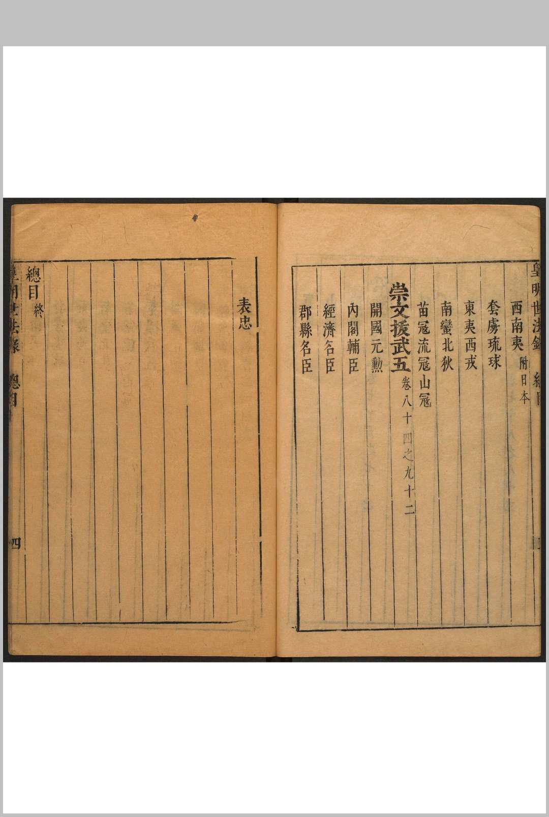 是书记明朝典章制度,起自洪武迄于万历。总目分维皇建极、悬象设教、法祖垂宪、裕国恤民、制兵敕法、浚河利漕、冲边严备、沿海设防、奖顺伐畔、崇文援武十类,每类凡五目。史料搜罗丰富,便于参考。