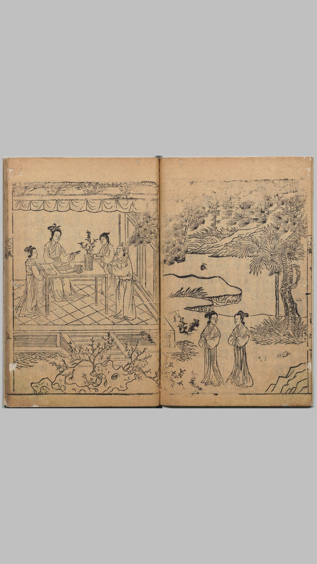 此《新镌图像注解曹大家七诫》(女诫)是东汉班昭所撰的一部教导班家女性做人道理的私书。全书公分为七篇:卑弱、夫妇、敬慎、妇行、专心、曲从、叔妹。书内含版画八幅,插图采用双面对连、横幅大图版式,插图为明代著名画家程应箕绘制。此为明万历十八年序刊本。