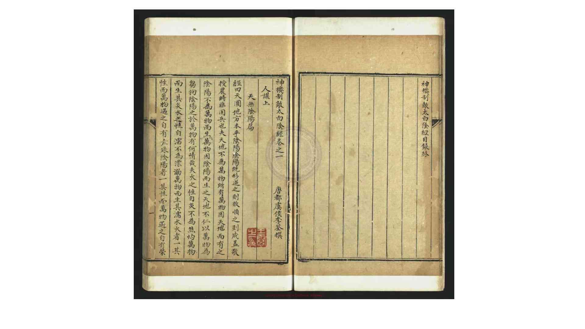 下载链接:神机制敌太白阴经 唐 李荃 撰