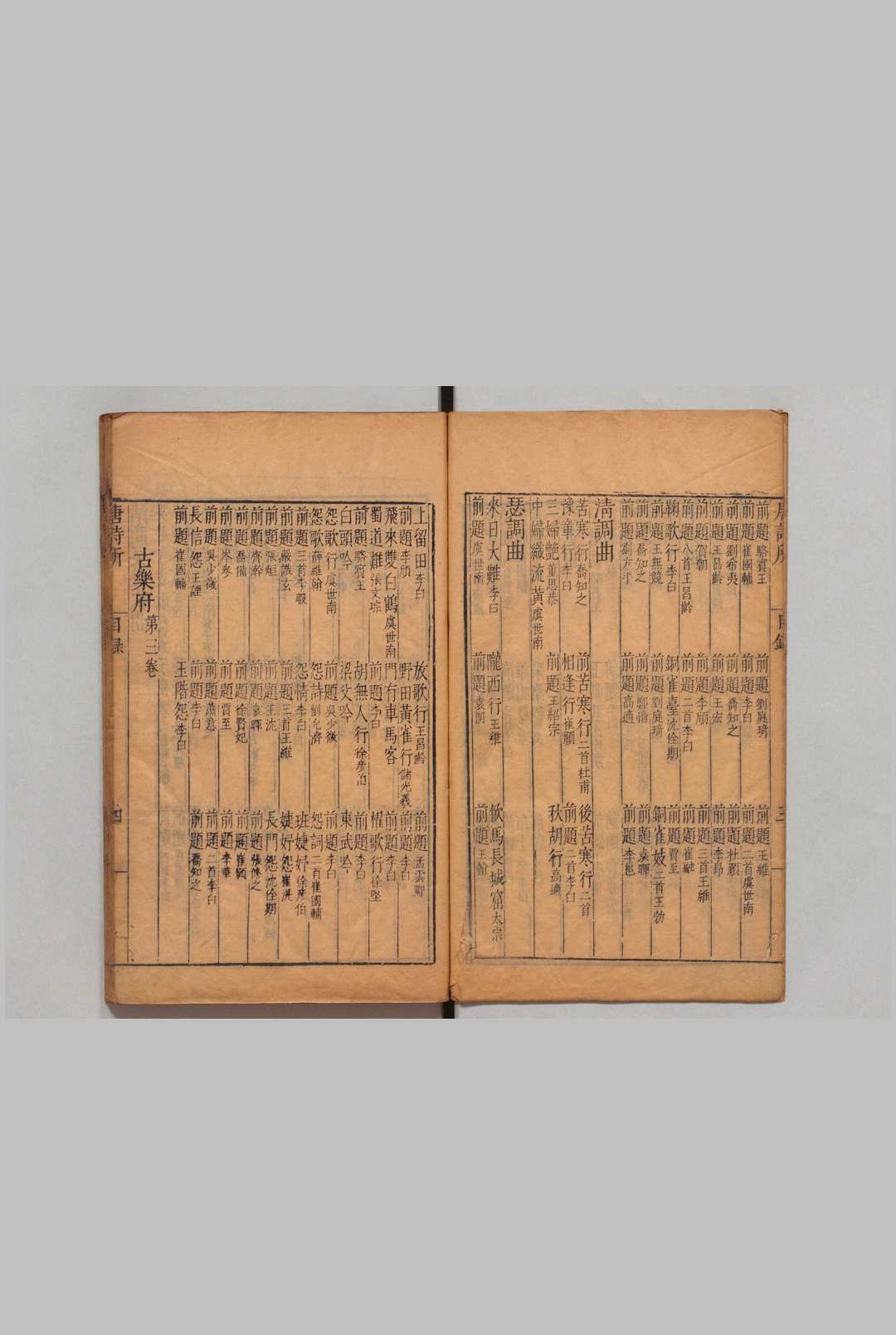 唐诗所。唐诗选集。共47卷。明臧懋循编纂。所选均为初、盛唐诗人作品,分为14门,即:古乐府、乐府系、三言四言古诗、五言古诗、七言古诗、杂体古诗、风体骚体古诗、五言律诗、七言律诗、五言排律、七言排律、五言绝句、七言绝句、阙文。每门之内,又各以题目分类,如“乐府系”分为歌、行、曲、词、引、篇、章、吟、咏、叹、谣11种。因之,《四库全书总目》说它“饾饤割裂”。据臧氏所撰《唐诗所序》,此书“以初、盛为前集,寻以中、晚为后集,以中、晚之可抑者为别集”,现在所能看到的,应仅是“前集”。本集有明万历年间刻本。