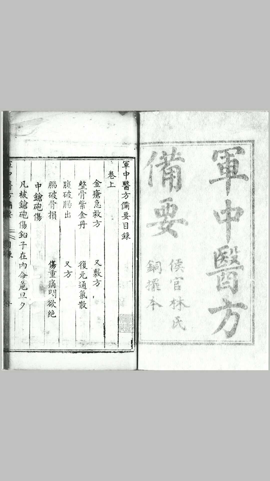 軍中醫方備要二卷(黑白)