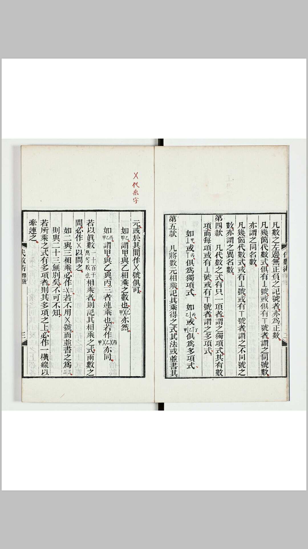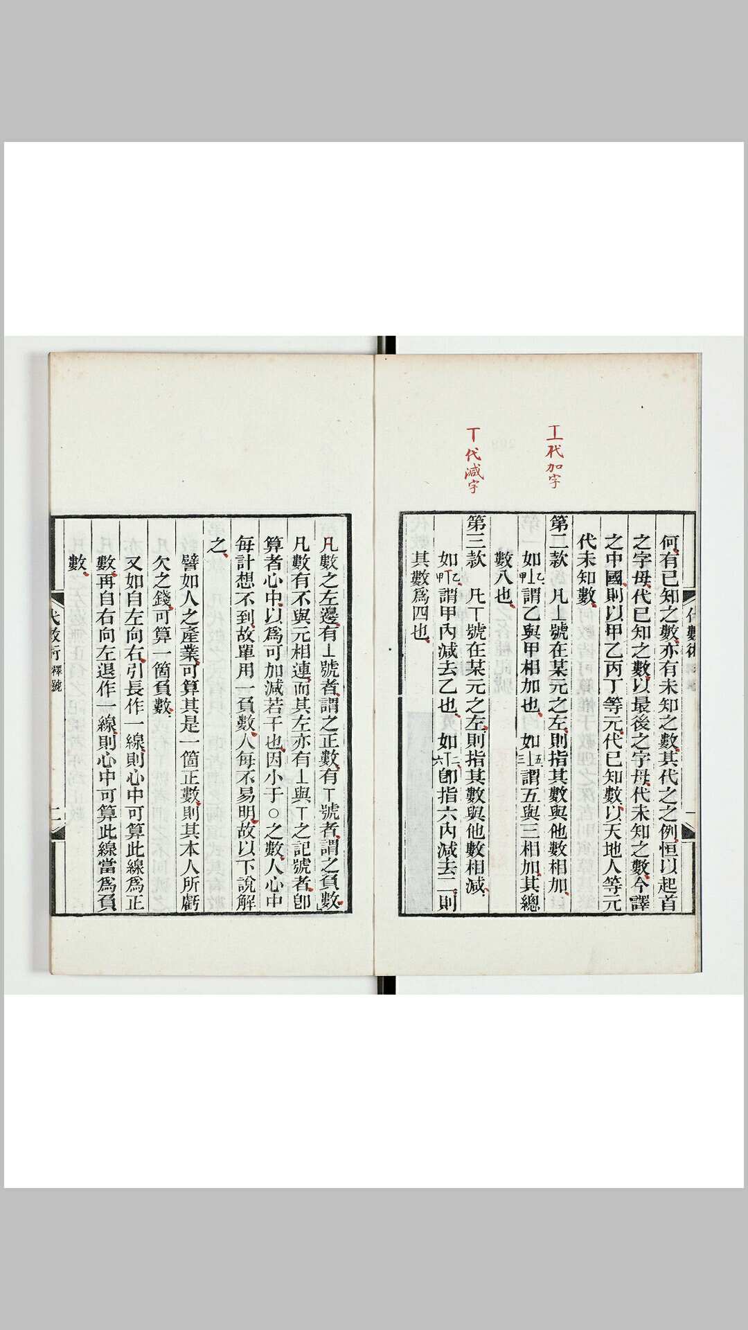英国华莱士(W.Wal-lace)原著。二十五卷。清华蘅芳同英国傅兰雅合译,同治十一年(1872)初刊。卷一至卷四论整式、分式、根式之运算,卷五论比例式,卷六至卷八论一次方程及方程组,卷九论二次方程,卷十论代数基本定理及根的有关性质,卷十一论三次方程,卷十二论四次方程,卷十三至卷十五讨论特殊高次方程的解法,卷十六论牛顿和拉格朗日的迭代法求高次方程之近似实根,卷十七论无穷级数,卷十八、十九论对数及其应用,卷二十论连分数,卷二十一论不定方程,卷二十二论用代数解几何问题,卷二十三论二元方程图像,卷二十四论三角函数关系式,卷二十五论棣美弗定理、三角函数展开式以及圆内接正十七边形的作法等。