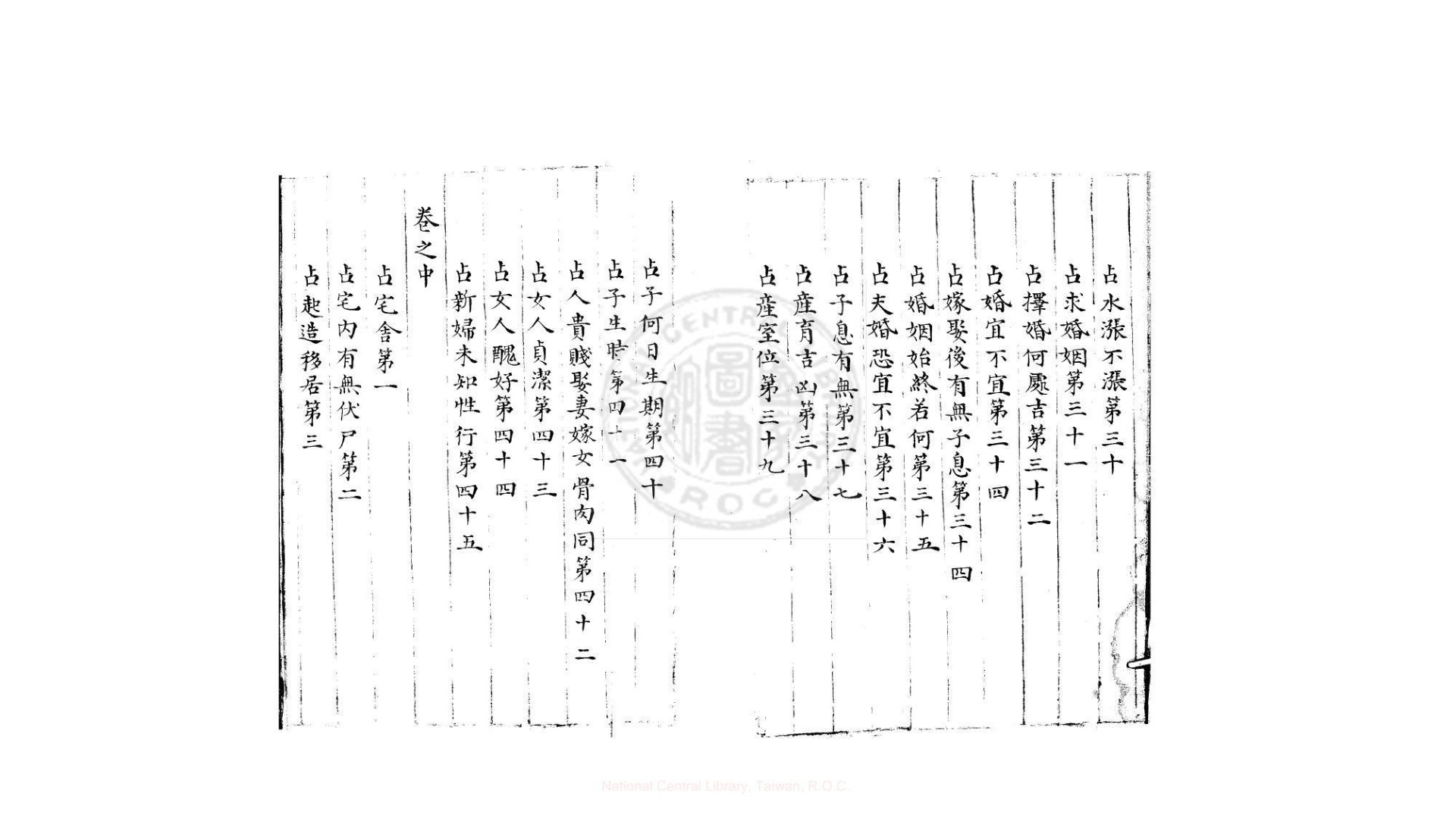 原书分为上、中、下三卷,凡一百一十六页,全书为七言绝句体裁,广述诸事占断之法,言简意赅,为甚佳之大六壬参考书籍。书末尚附录大六壬邵康节先生二十四课,专述三传所形成之二十四种格局,实属难得之壬术古藉及佳作也。