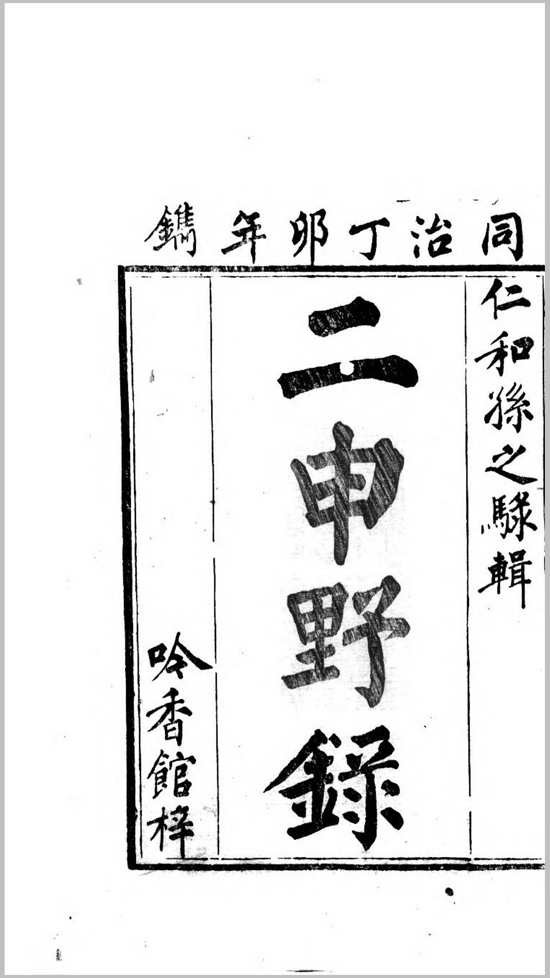二申野录.清.孙之騄撰.清同治6年吟香馆刊本