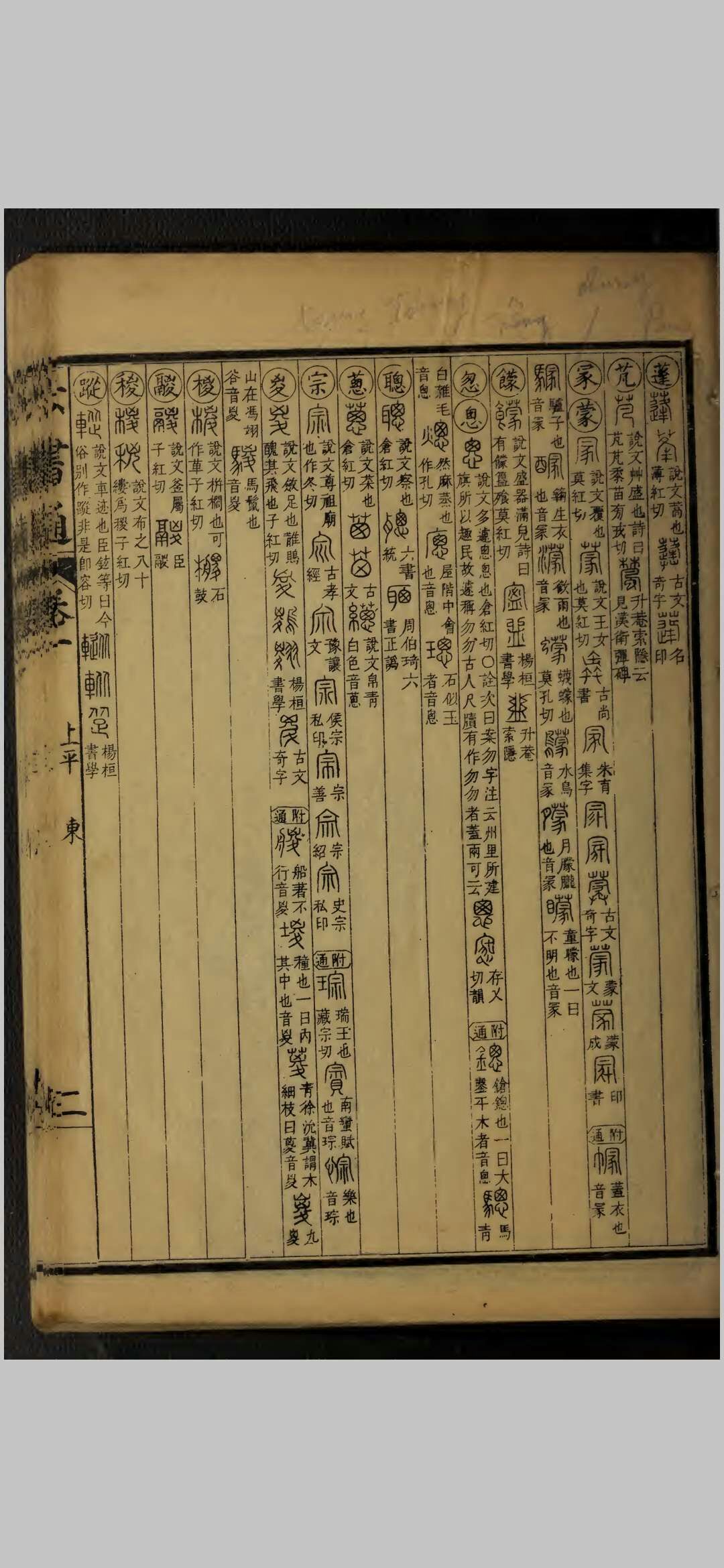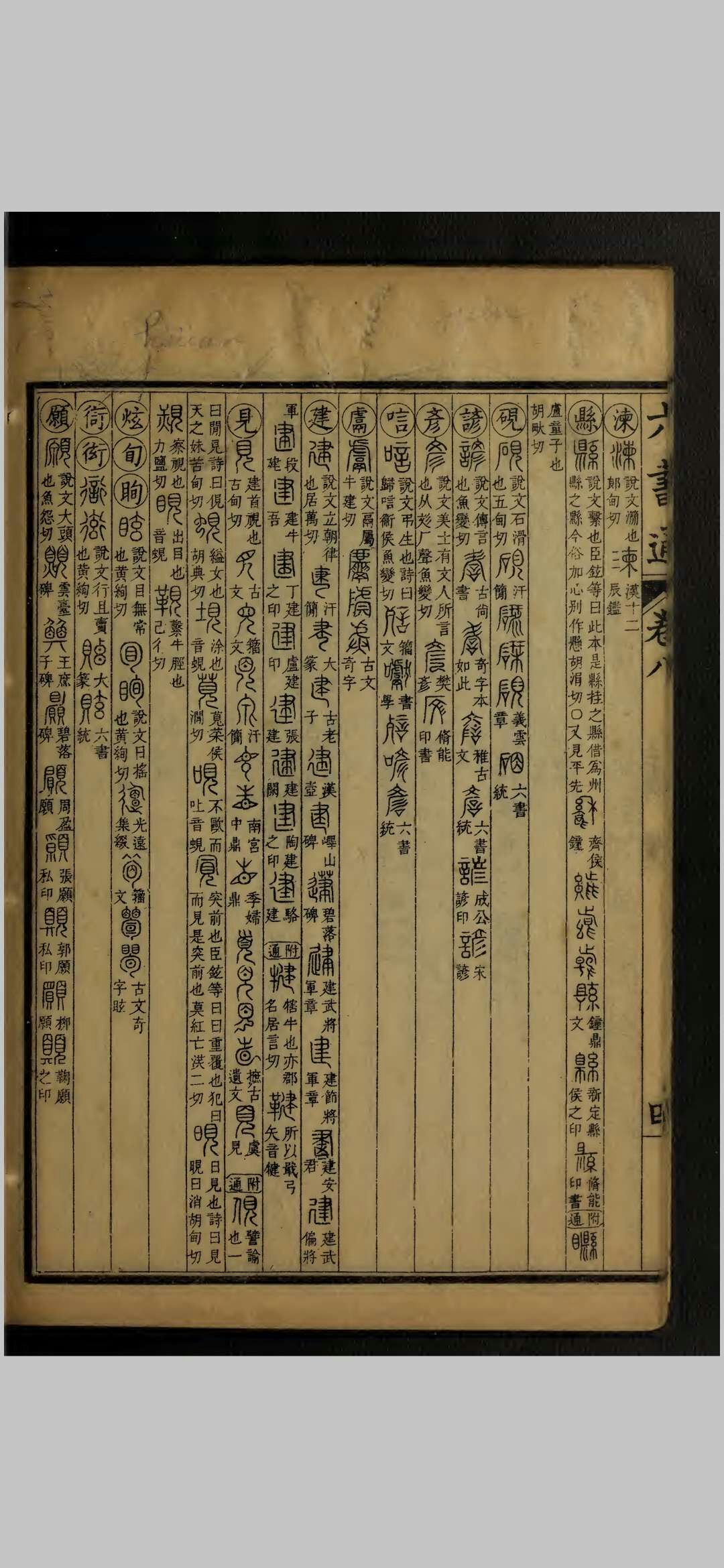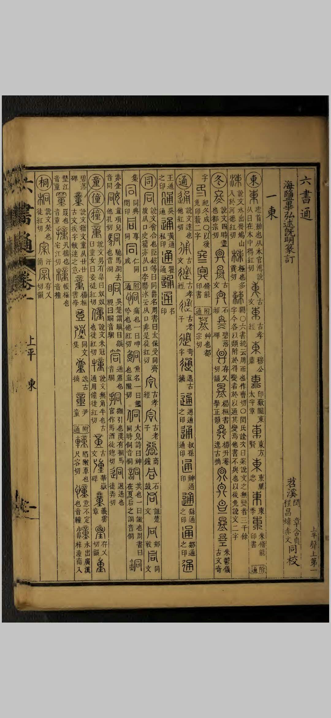 《四库总目提要》 :国朝闵齐伋撰。齐伋字寓五,乌程人。世所传朱墨字版、五色字板谓之闵本者,多其所刻。是书成於顺治辛丑,齐伋年八十二矣。大致仿《金石韵府》之例,以《洪武正韵》部分,编次《说文》,而以篆文别体之字类从於下。其但有小篆而无别体者,则谓之“附通”,亦并列之。不收钟鼎文,而兼采印谱。自称通许慎之执,不知所病正在以许慎为执也。