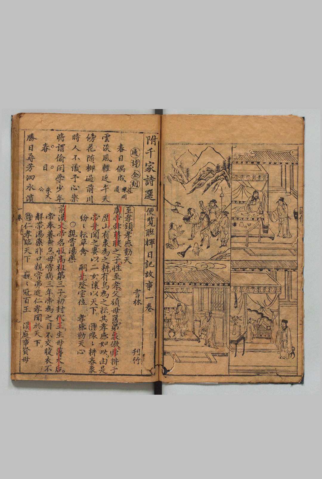 便览联辉日记故事 3卷(上层附)千家诗选 刊本 ,明末