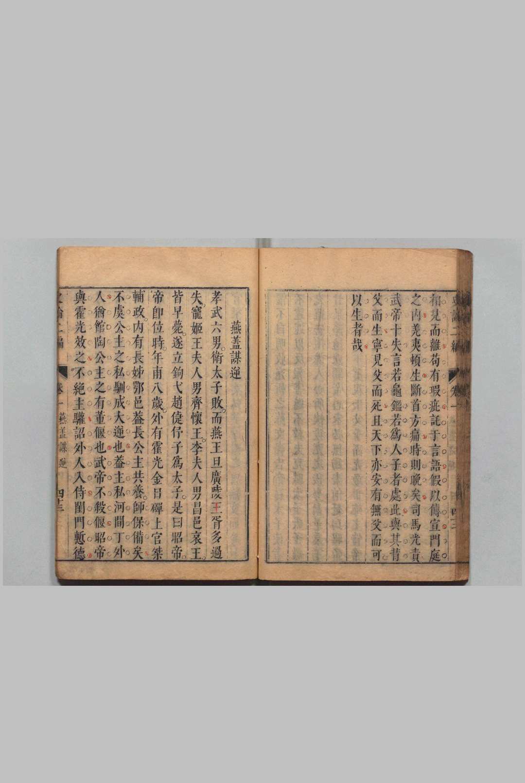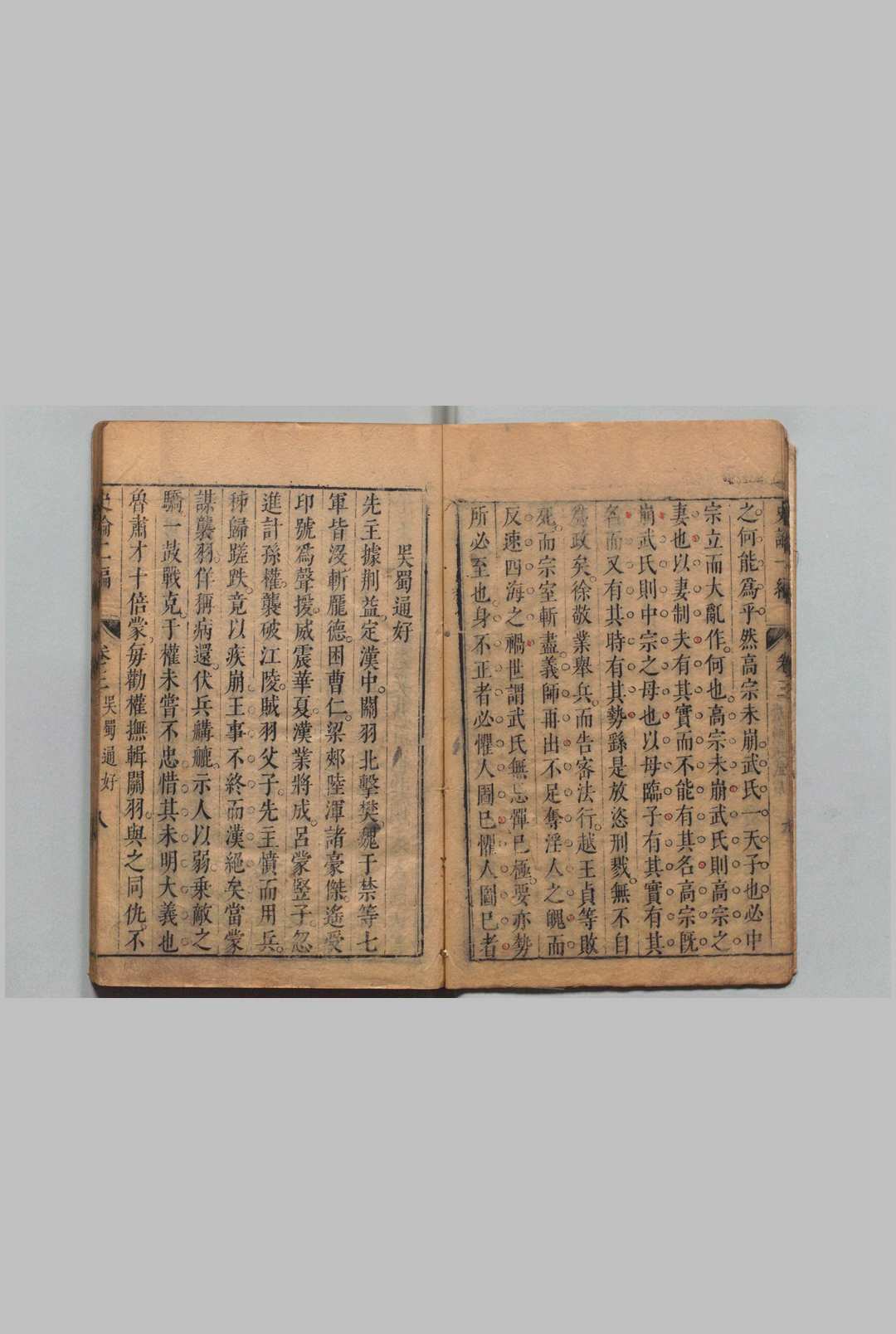 依《通鉴纪事本末》、《宋史纪事本末》、《元史纪事本末》篇次作“论”,每篇一论,总论“三家分晋”至“元代诸帅之争”史实,标其大义,申以己见。清代列为禁书。