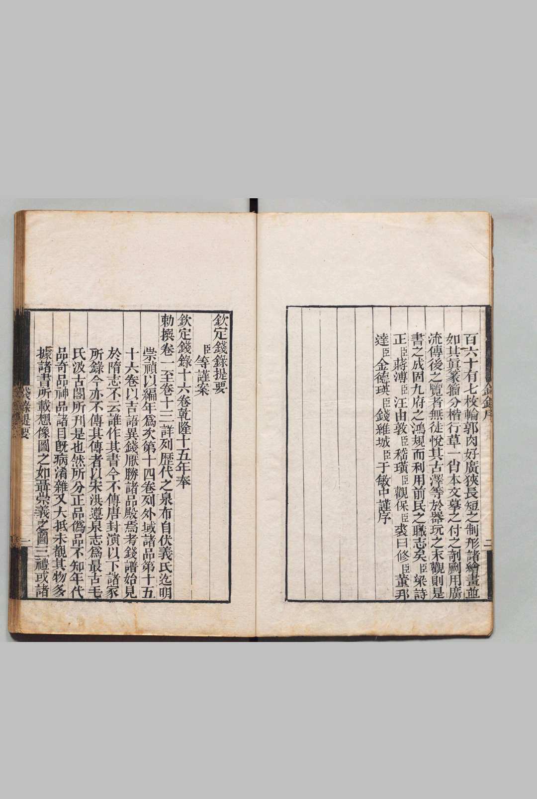 宋代以前有封演等多人著有名为《钱录》之书,唐朝张台曾著有此书,皆已失传。清乾隆十五年(1750年)梁诗正等人奉敕纂辑《钦定钱录》十六卷,共收录自伏羲氏至明代崇祯年间钱币,以及外国货币、厌胜钱共五百多种。