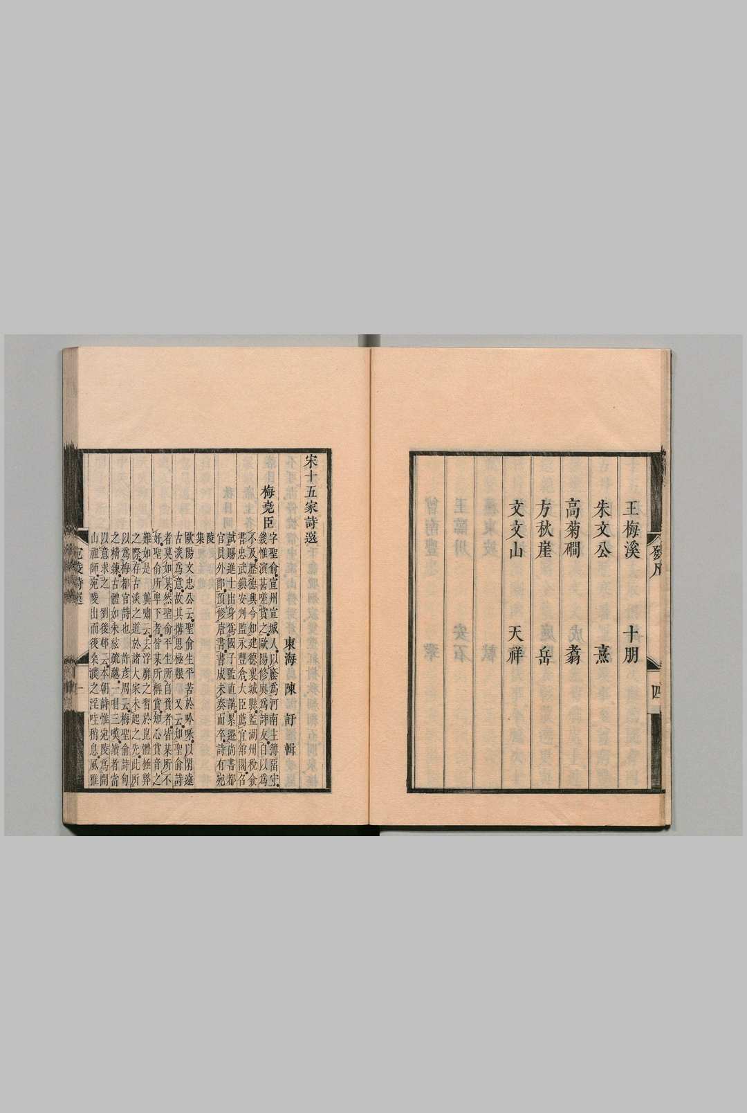 《宋十五家诗选》宋诗总集。清代陈编选。陈,字言扬,号宋斋。海宁(今属浙江)人。贡生,曾任温州教授。
