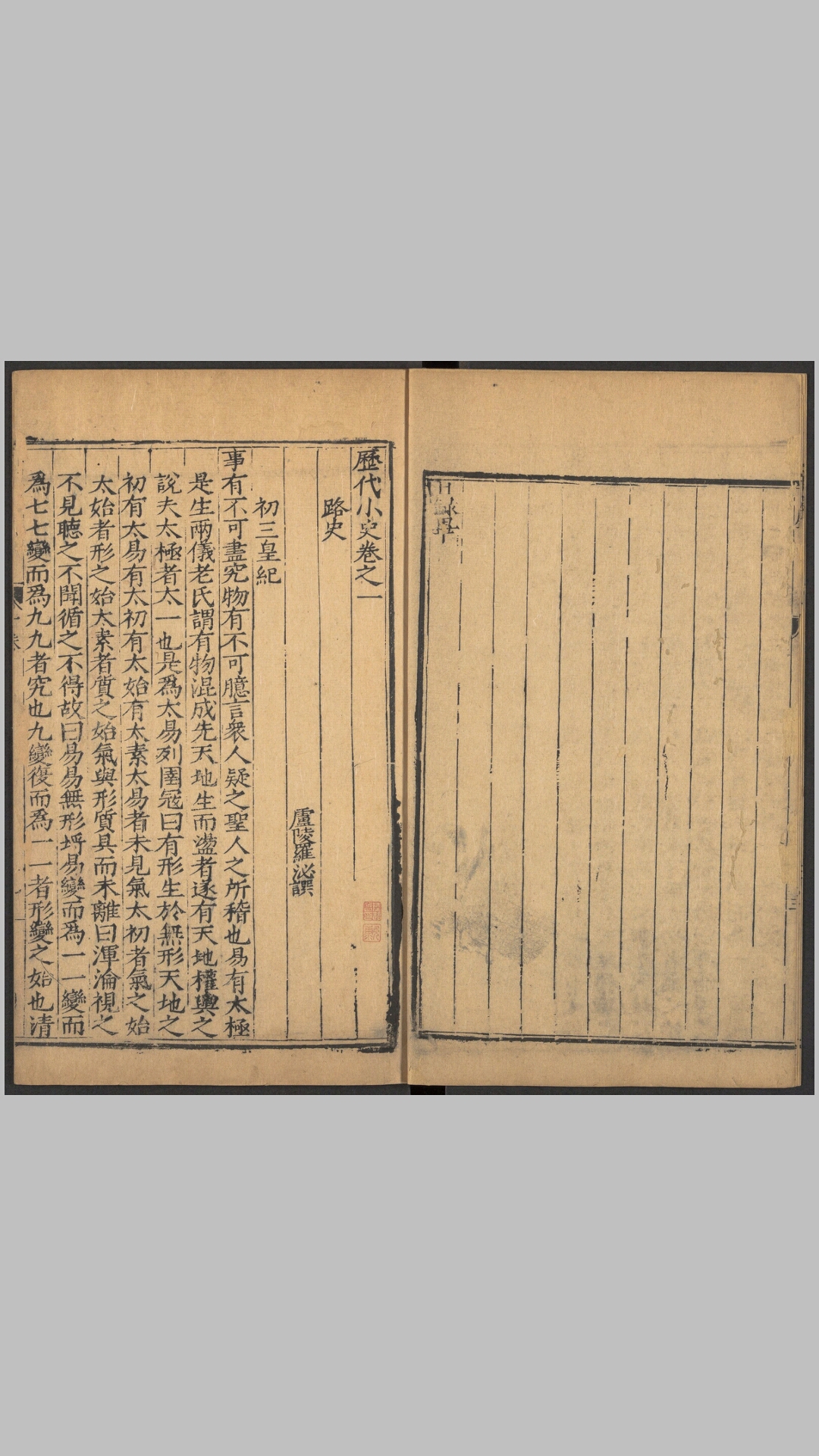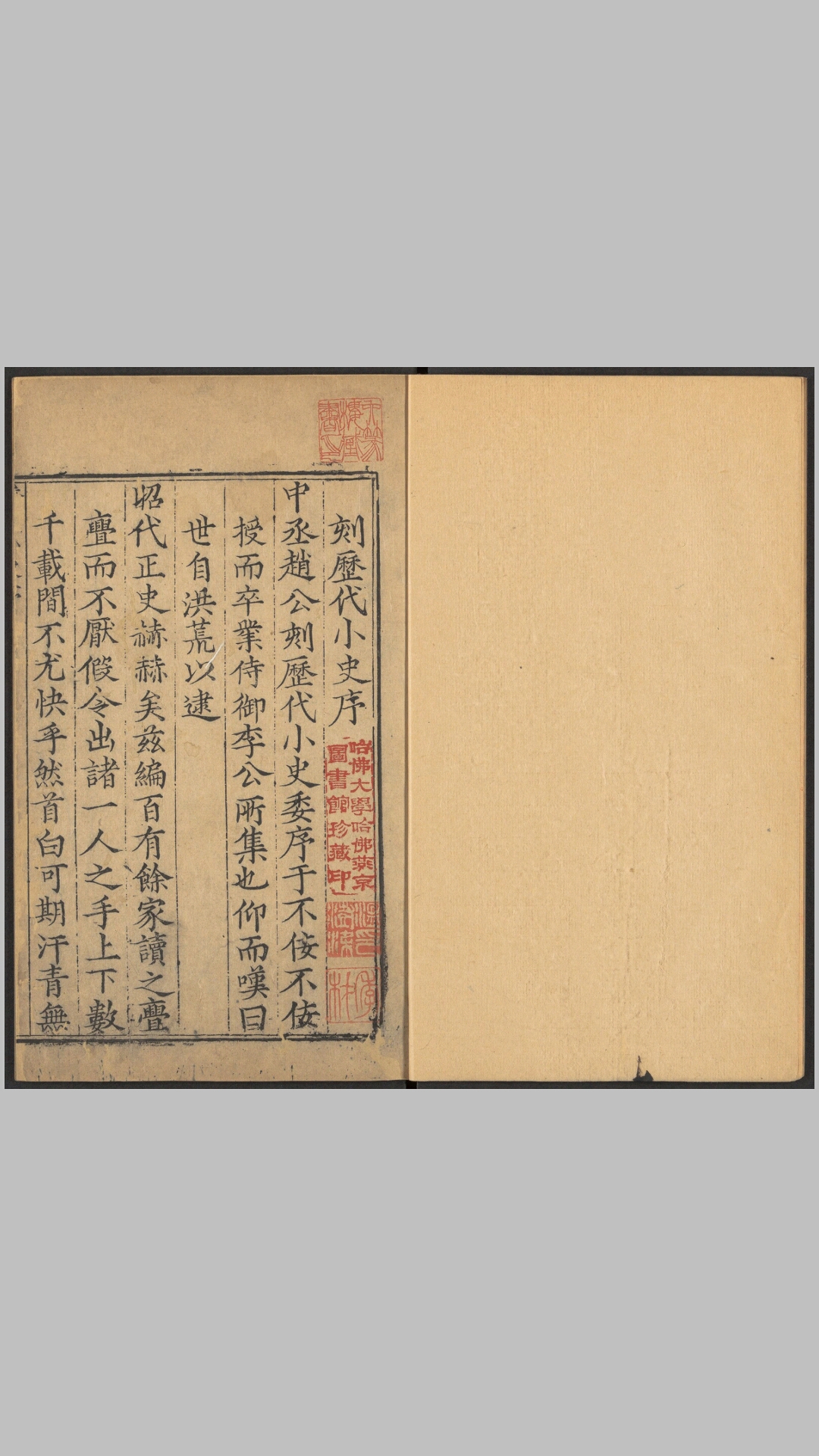 此《历代小史》为明代万历间李栻辑编。全书共一百零五卷,收前收六朝至明代的野史、笔乘,略依所记史实先后编排,后列有关边疆和域外的杂著,共一百零六种。此为明代刊本,前有沔阳陈文烛序,称为侍御李公所集,赵中丞刻。