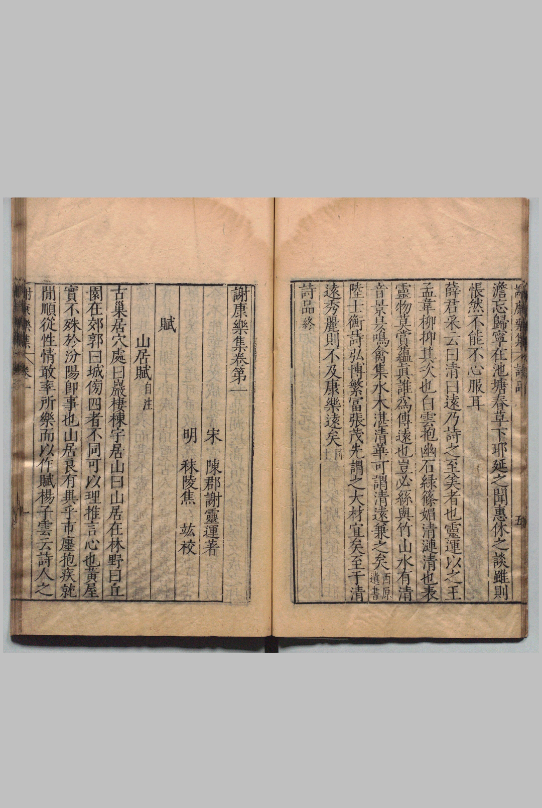 谢灵运(385~433年),晋宋间诗人。原籍陈郡阳夏(今河南太康),生于会稽始宁(今浙江上虞)。东晋名将谢玄之孙,袭爵封康乐公,世称“谢康乐”。
