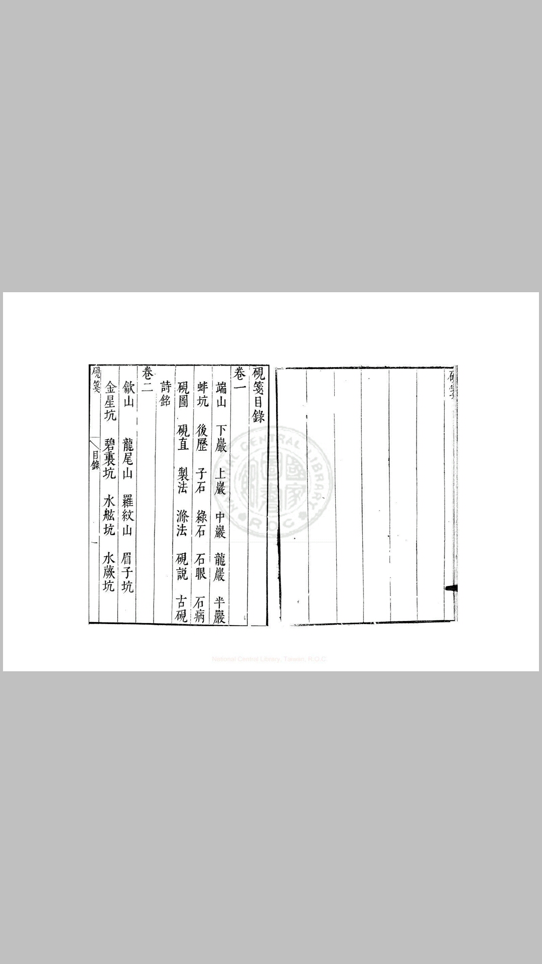宋高似孙撰。四卷。首卷记端砚,二卷记歙砚,各附以诗文,原有砚图42式,已佚。三卷记诸砚品,共65种。四卷录前人之为诸砚所作诗文。此书备采各家之说,叙述详实。清曹寅刻入《楝亭十二种》。