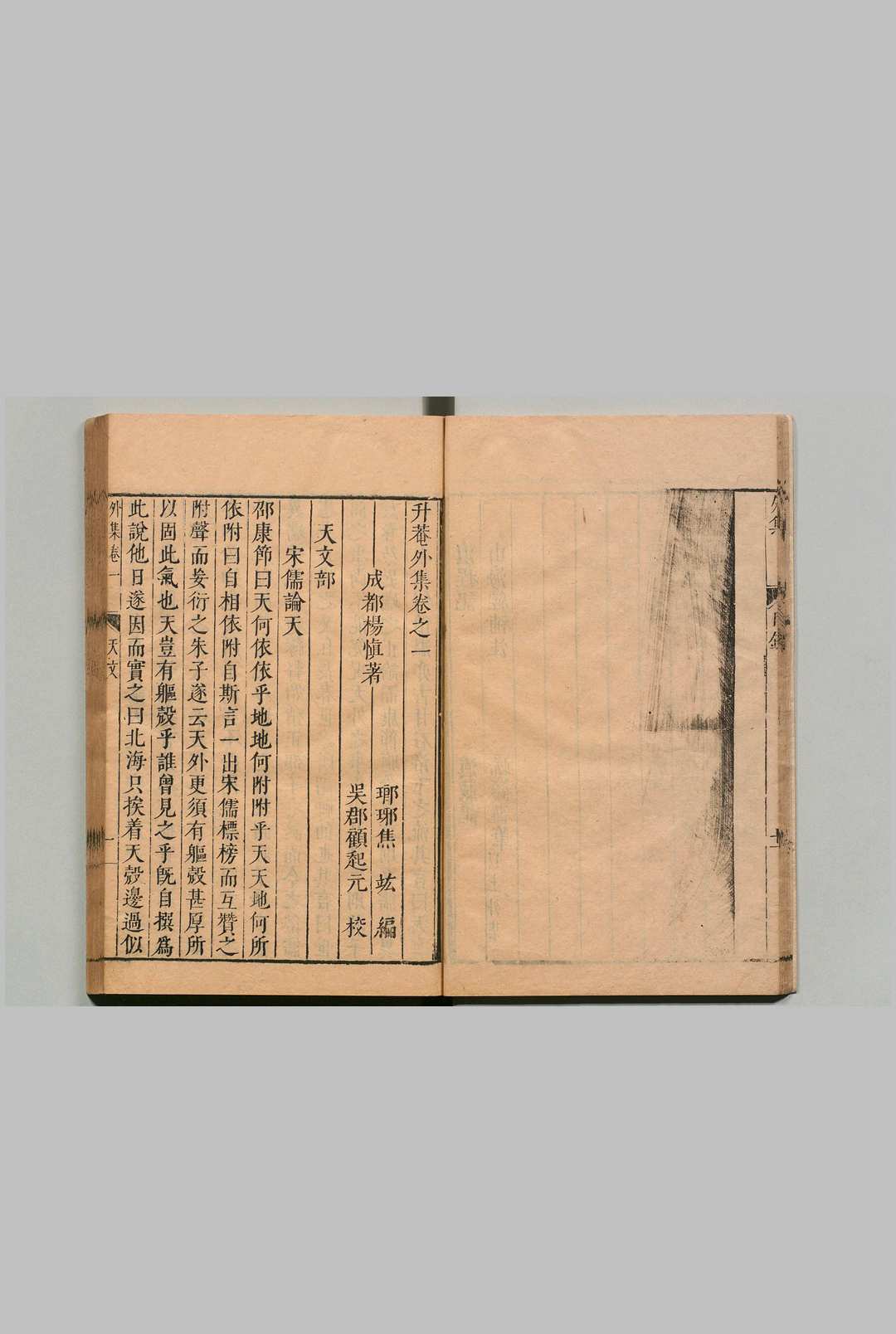 《升庵外集》是明代学者杨慎撰写的古籍合集,由焦竑辑录整理,现存明嘉靖四十五年刻本,另有明万历四十五年刊本等。焦竑花费数十年时间搜集杨慎著作,经过校对订正后编辑成书,并在《升庵外集题识》中盛赞杨慎。顾起元在《升庵外集序》中称杨慎著述宏富。