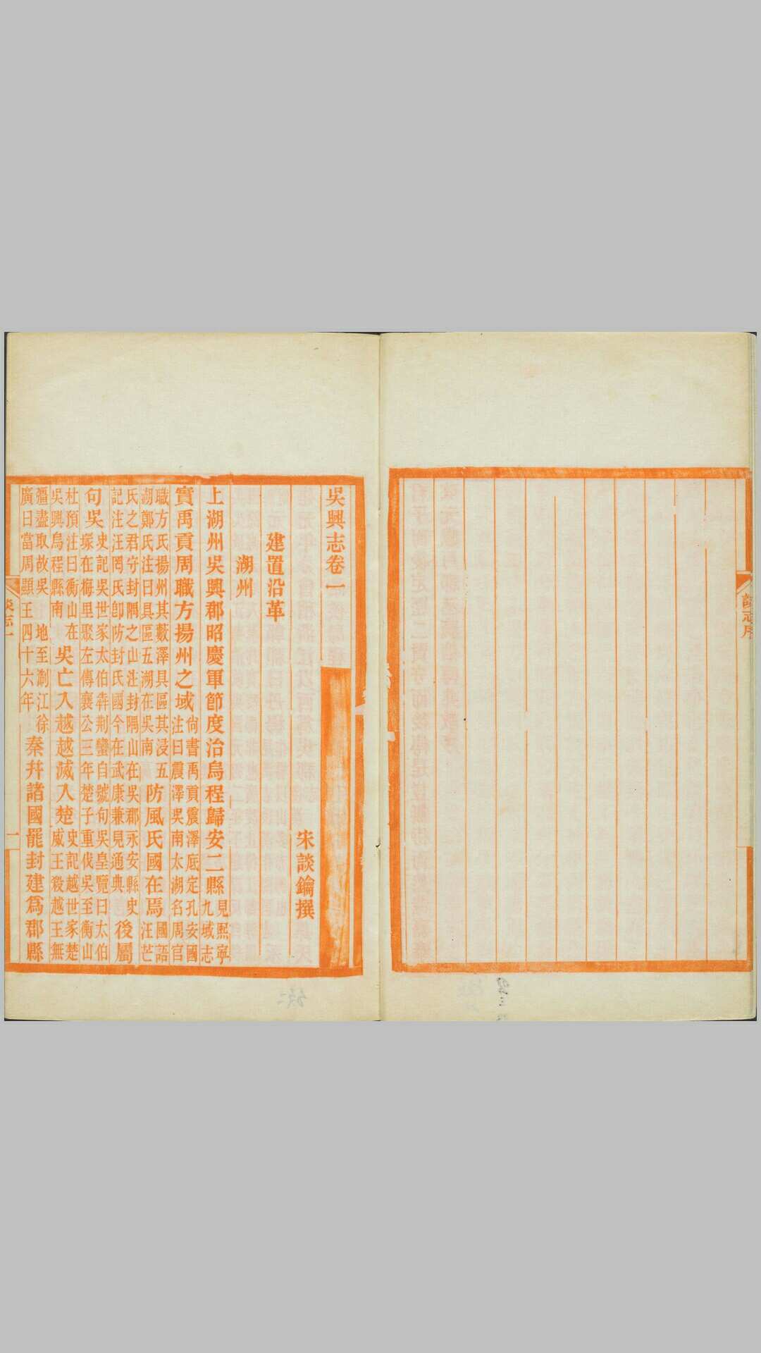 吴兴志.二十卷.宋.谈钥编撰.民国三年南浔刘氏嘉业堂红色印本