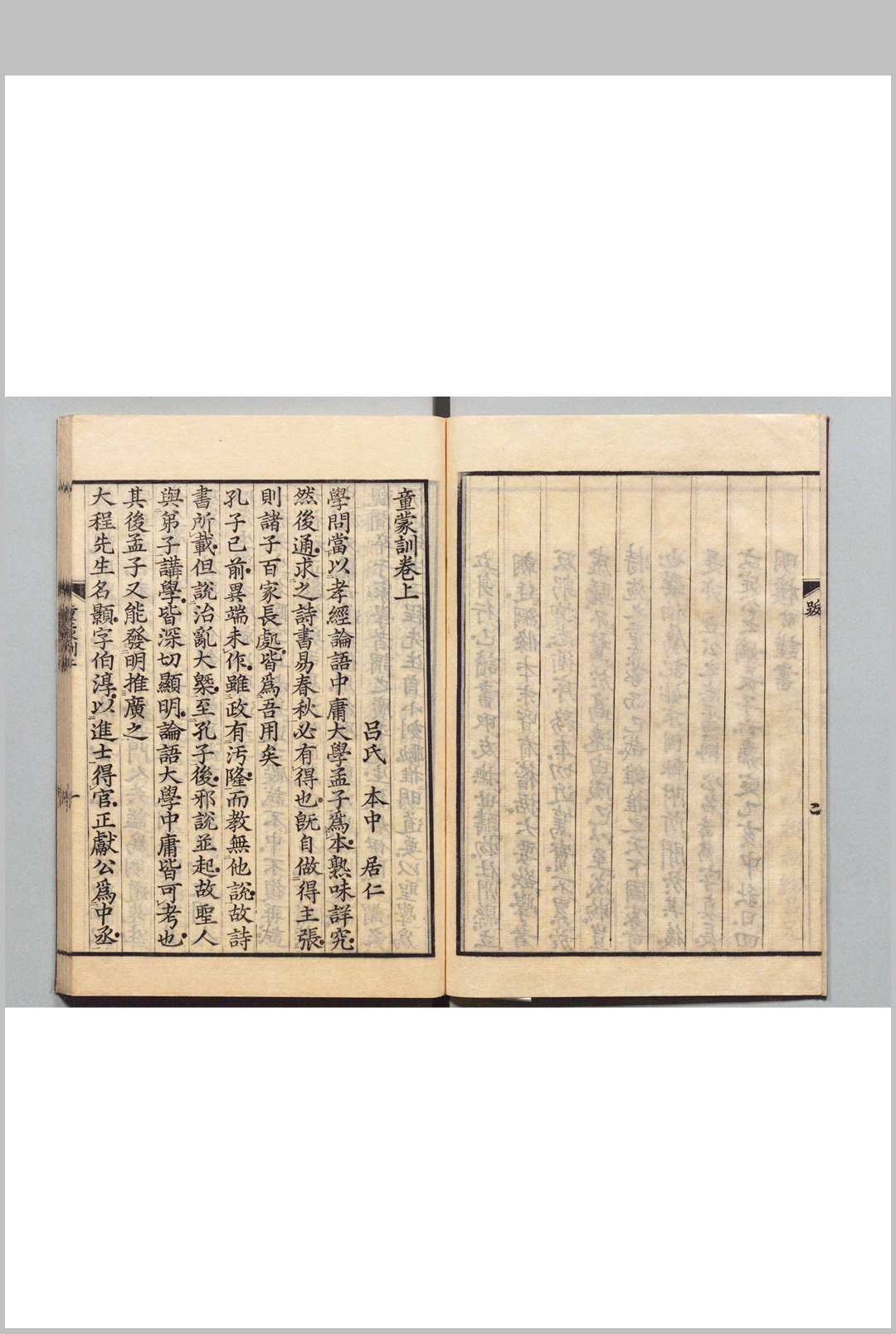 《童蒙训》又称《吕氏童蒙训》,共三卷,宋代吕本中撰。《童蒙训》的宗旨是为了光宗耀祖,使祖宗的德业能流芳千古,并以此勉励自己的后人。是封建社会讲究的孝道的核心。